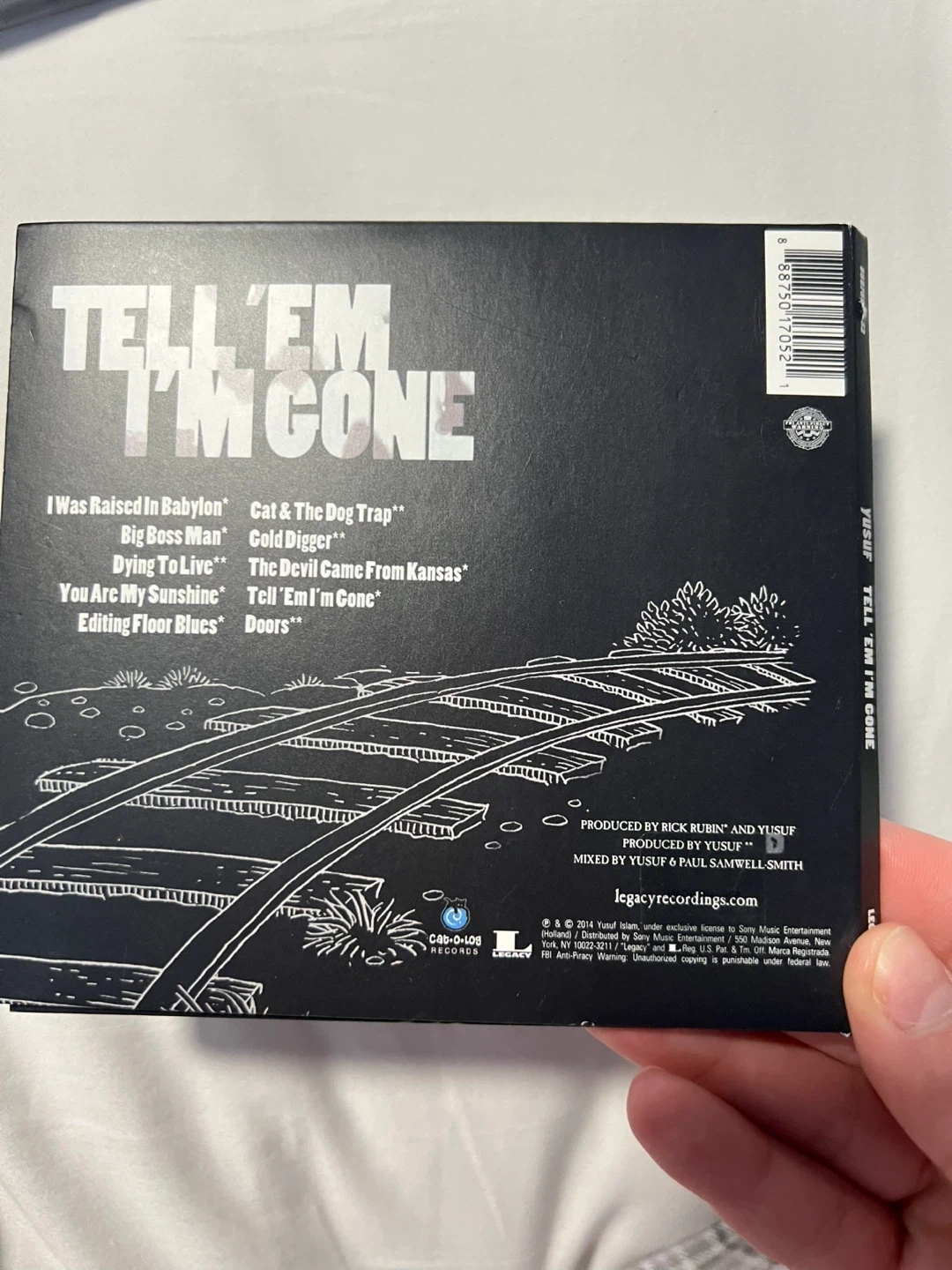 This is the "Tell 'Em I'm Gone" CD by Yusuf. It features a collection of songs including "I Was Raised in Babylon" and "Doors". Legacy Recordings, 2014.