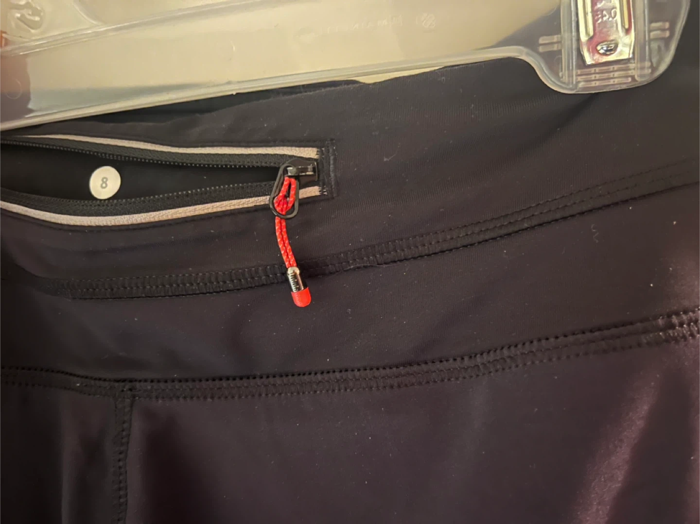 Lightweight Swift Four-way stretch fabric wicks sweat and dries fast. Wide waistband has an infinity drawcord that stays put. Liner is lightweight, sweat-wicking, and quick-drying with added Lycra® fibre. Back zipper pocket to store safely your Card, keys, gels