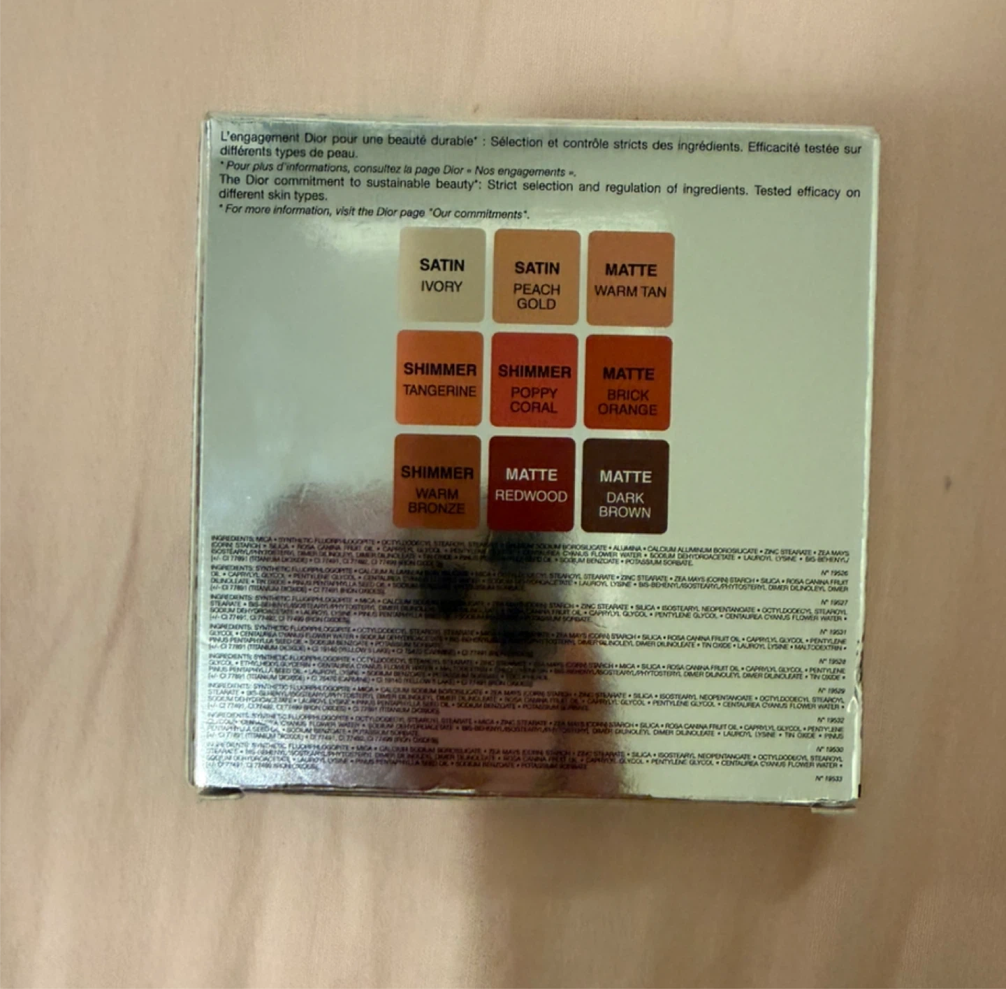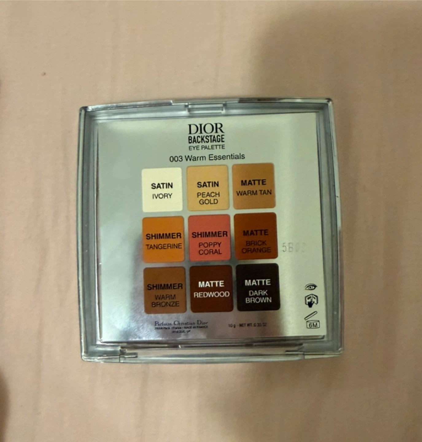 Selling a Dior Backstage Eye Palette in 003 Warm Essentials! This palette features a range of satin, shimmer, and matte shades, including Ivory, Peach Gold, Warm Tan, Tangerine, Poppy Coral, Brick Orange, Warm Bronze, Redwood, and Dark Brown. Perfect for creating a variety of eye looks