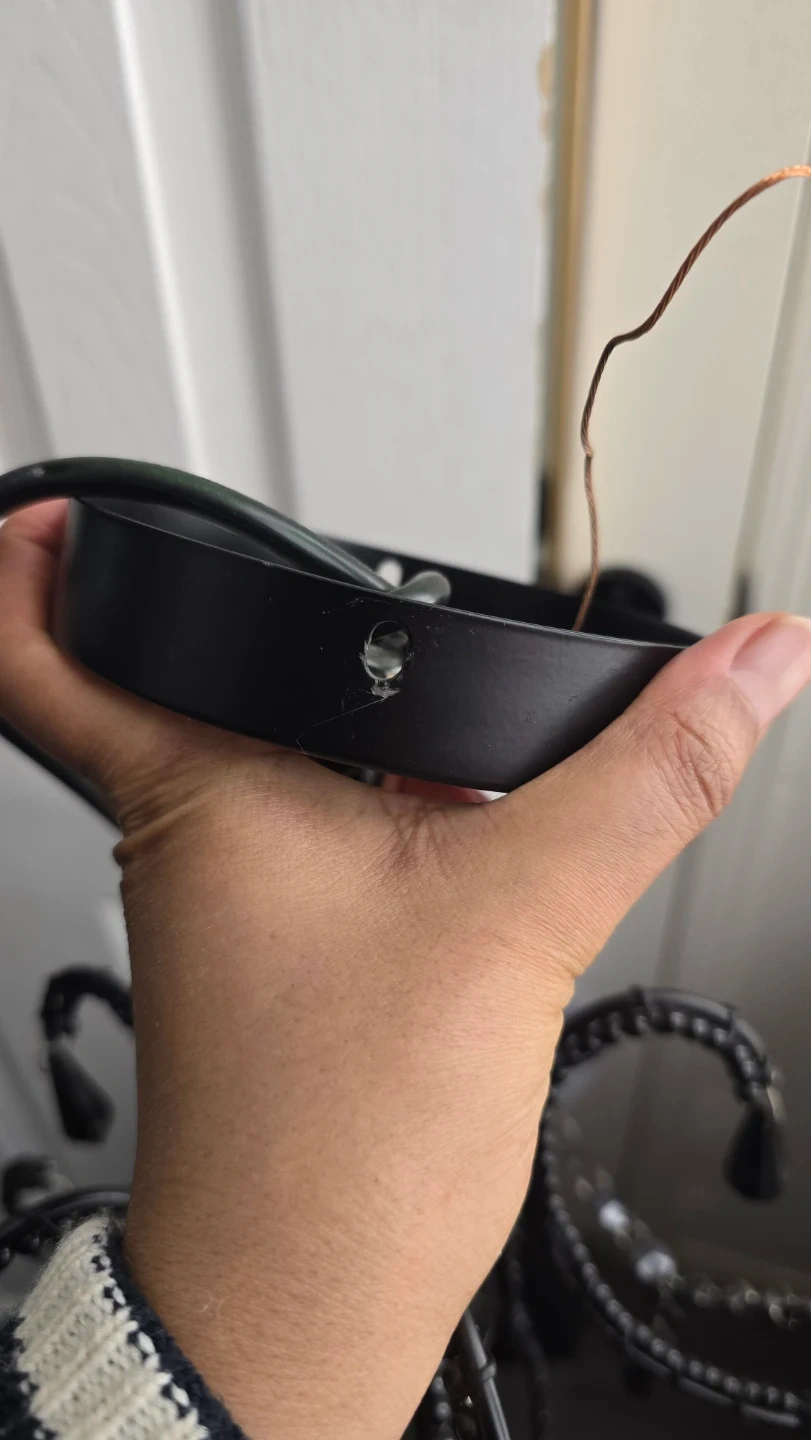 This black chandelier-style light fixture adds a touch of elegance. It's designed with decorative beads and hanging crystals. A great addition for entryways or dining areas!