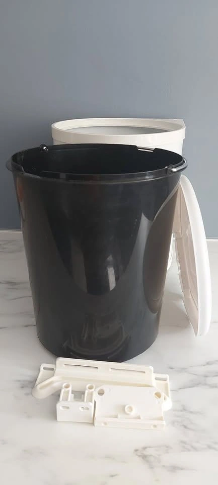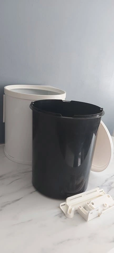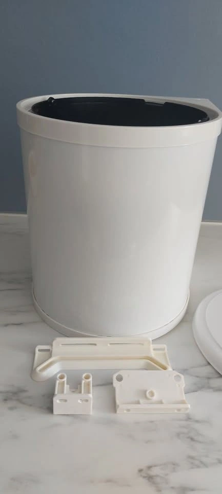 Design features an automatic lift-up lid that opens with the door and conceals trash in the closed position Easy installation Ideal for use in kitchens, bathrooms and laundry rooms 10 quart capacity White finish Min. interior drawer dimensions: 10-7/8" deep x 10-7/8" diameter x 13" H I paid at Home Hardware $54.99 + tax