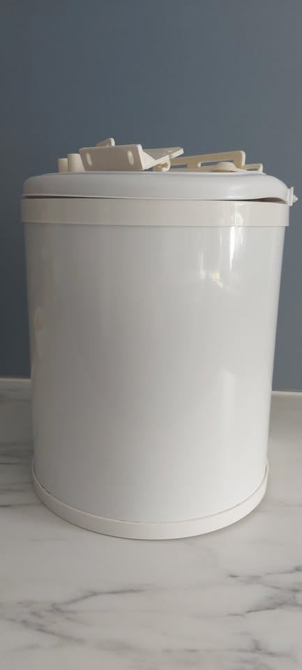 Design features an automatic lift-up lid that opens with the door and conceals trash in the closed position Easy installation Ideal for use in kitchens, bathrooms and laundry rooms 10 quart capacity White finish Min. interior drawer dimensions: 10-7/8" deep x 10-7/8" diameter x 13" H I paid at Home Hardware $54.99 + tax