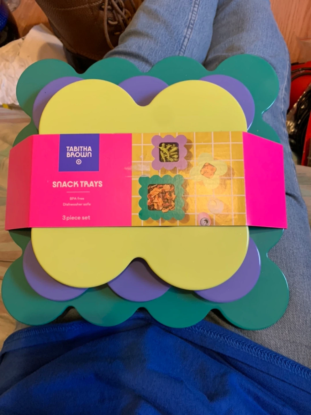 Selling a set of Tabitha Brown snack trays! This is a 3-piece set, perfect for serving snacks in a fun and stylish way. They are also dishwasher safe for easy cleaning