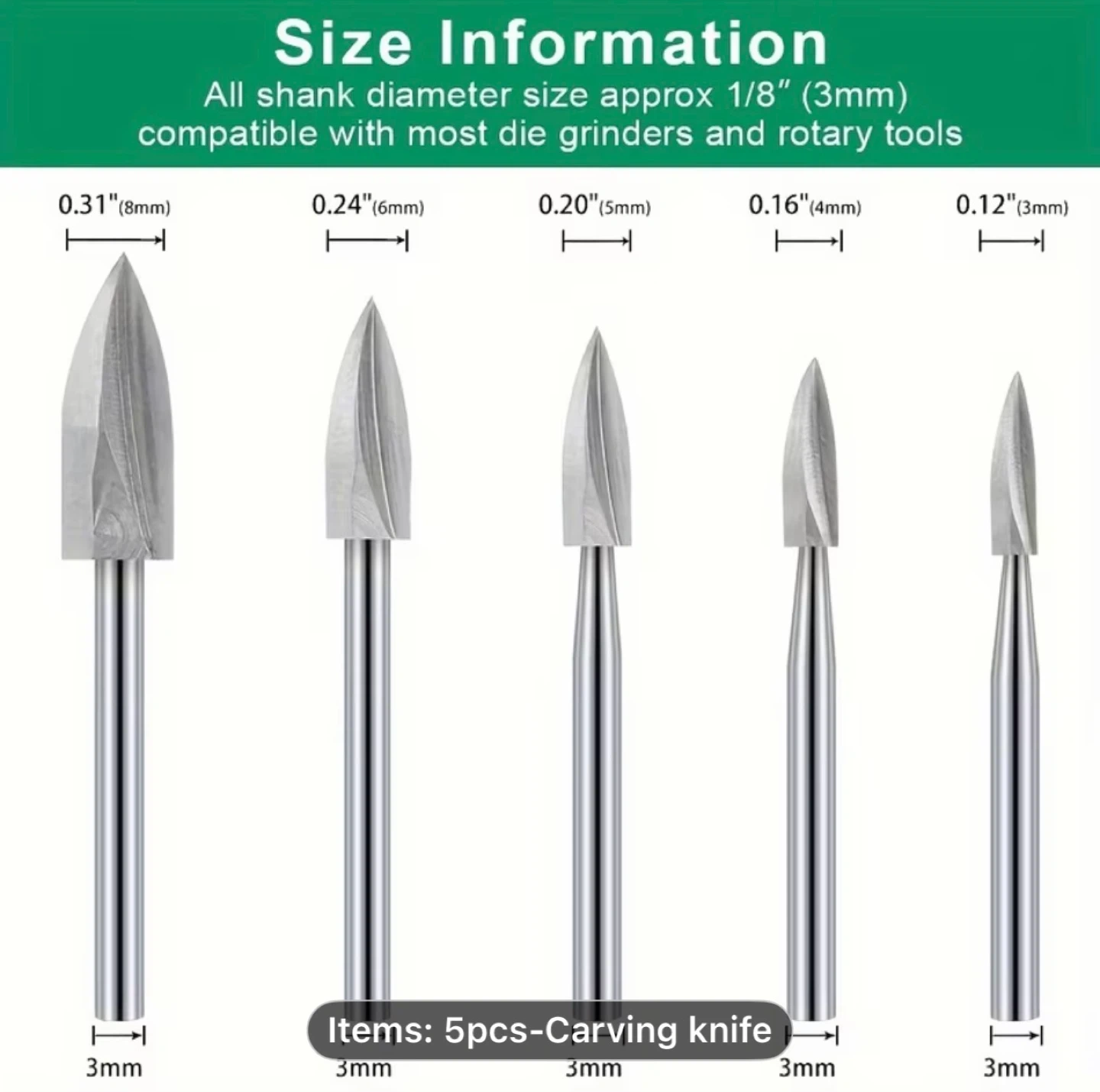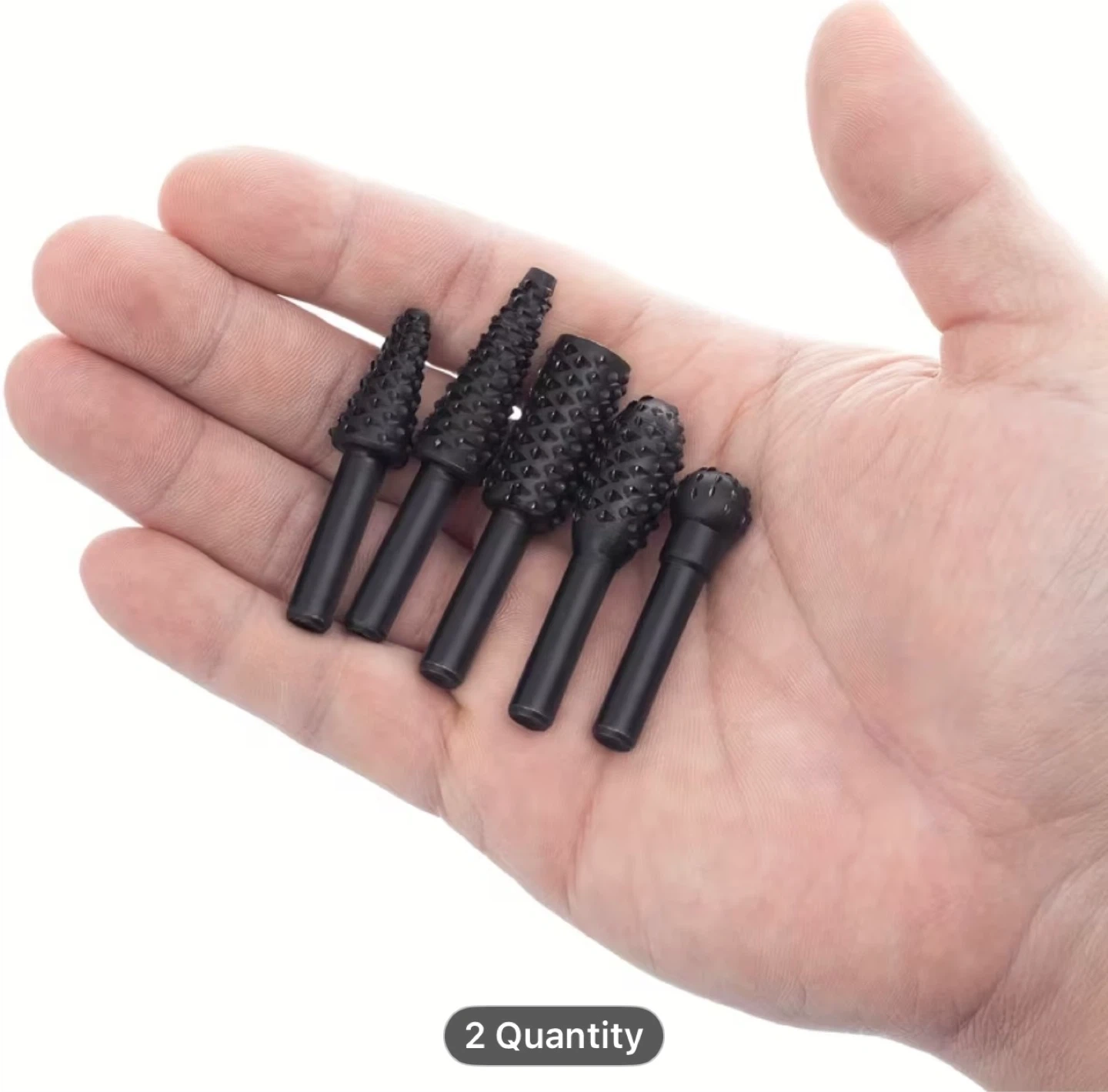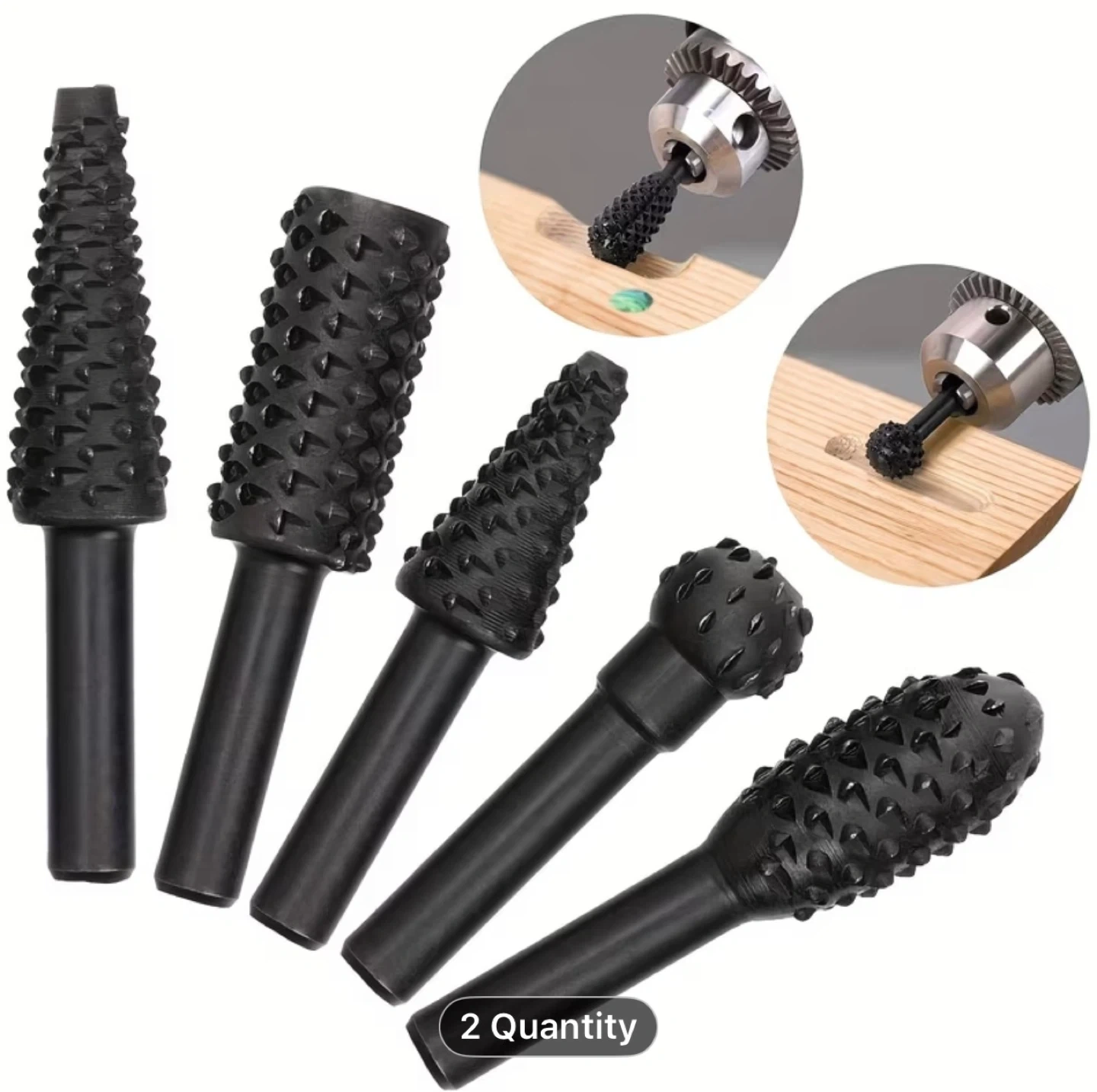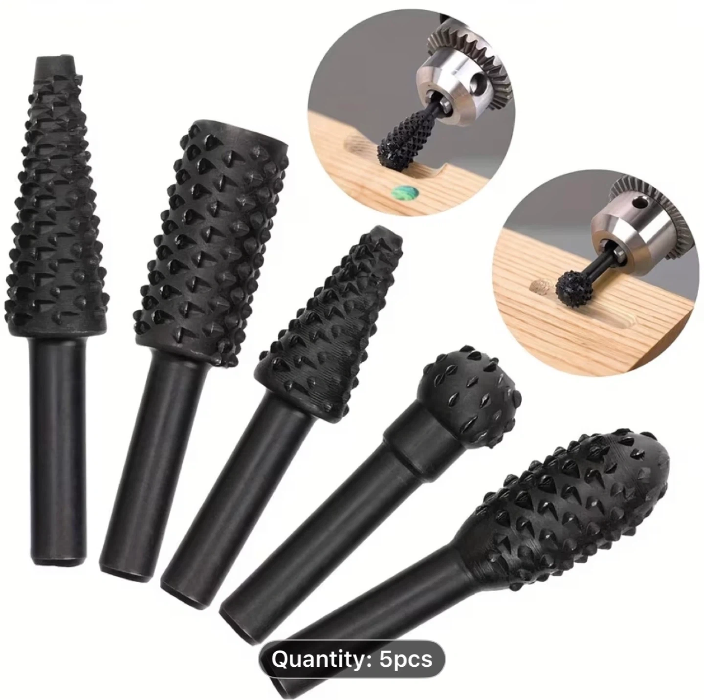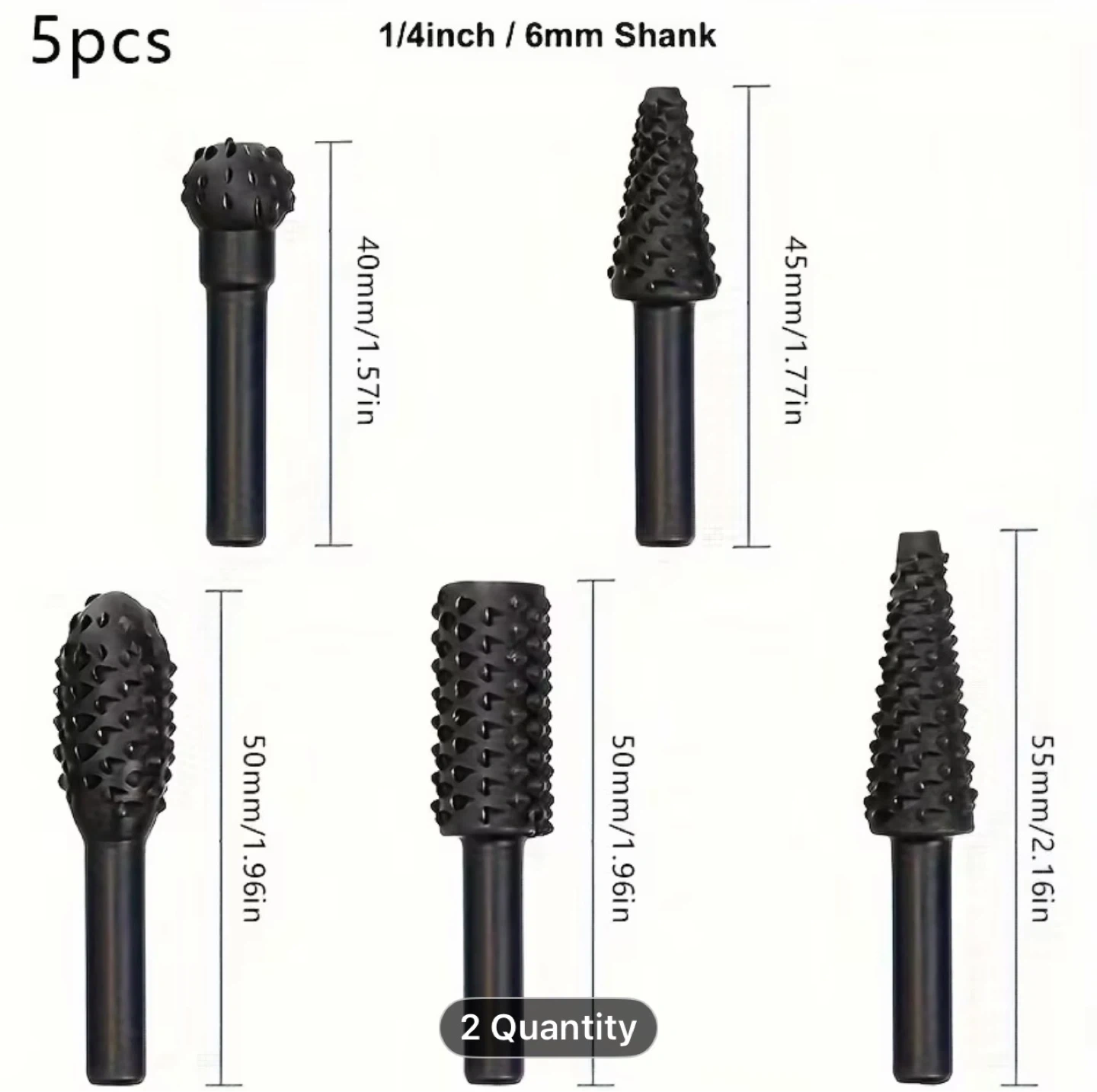 5pcs Wood Carving File Rasp Drill Bit, 1/4" 6mm Rotary