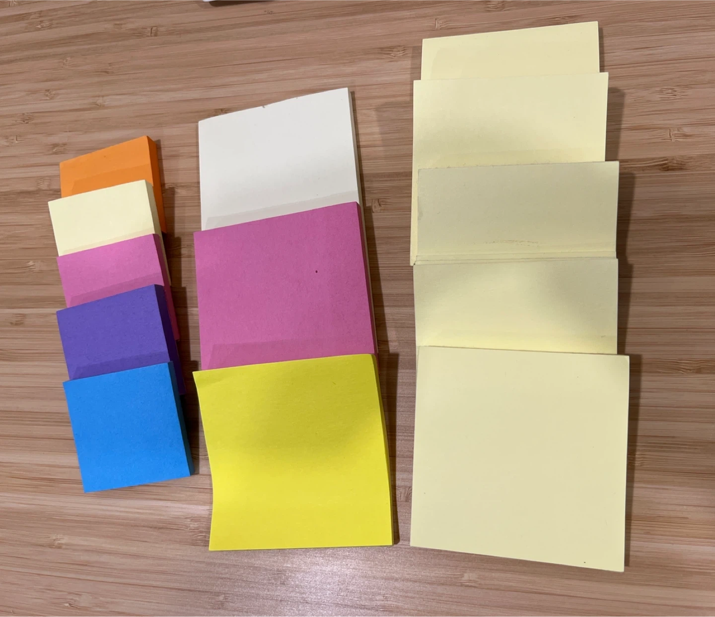 Grab yourself a collection of sticky notes in various colours and sizes! Great for reminders, notes, bookmarking, or adding a pop of colour to your workspace. Includes yellow, pink, white, blue, purple, and orange notes