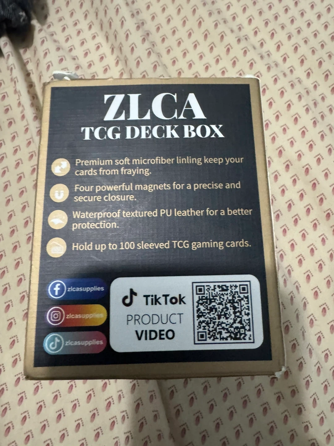 This ZLCA TCG deck box is made with waterproof textured PU leather and has a premium soft microfiber lining. It holds up to 100 sleeved TCG gaming cards. Four powerful magnets ensure a precise and secure closure.