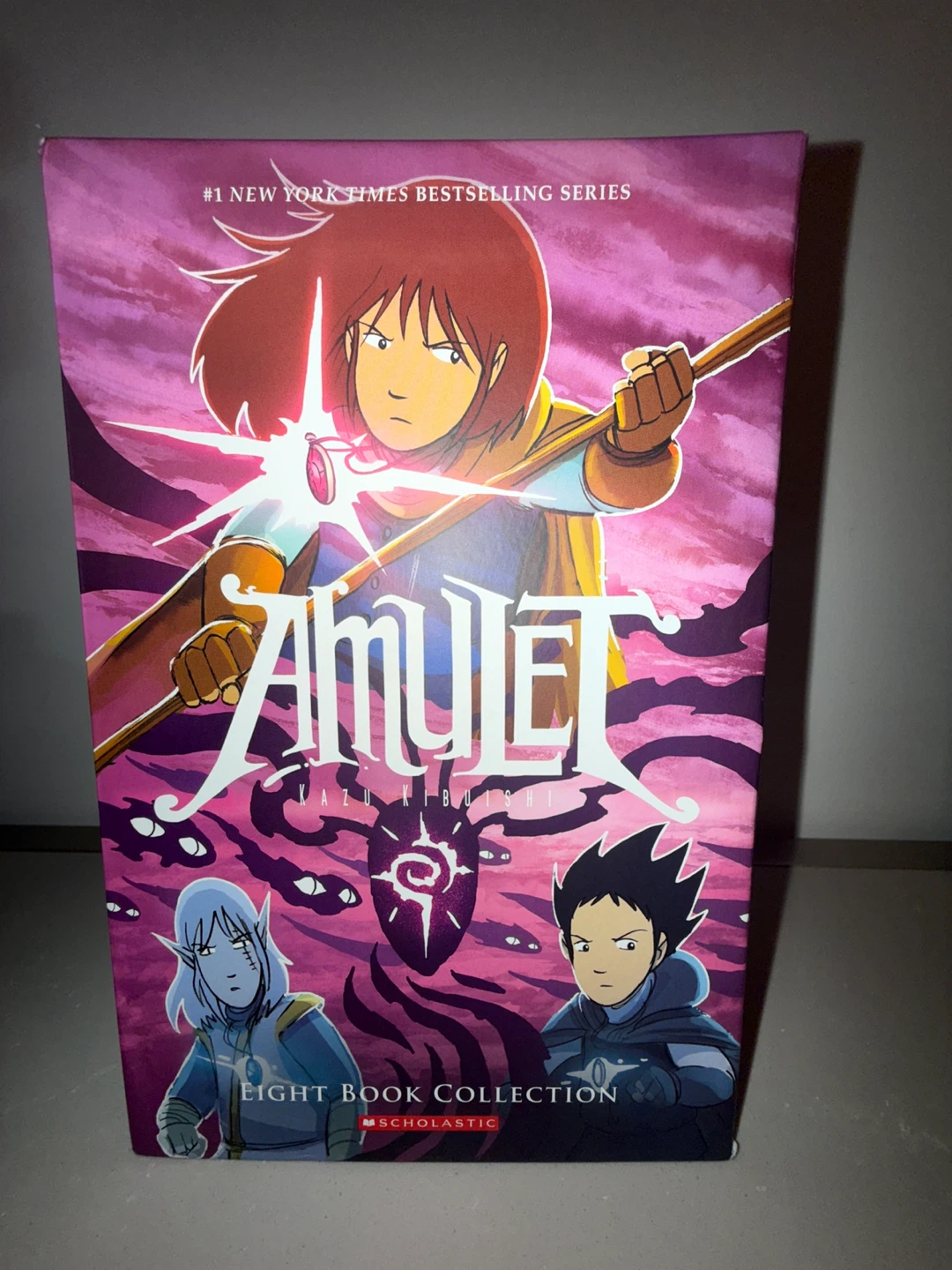 This is the complete Amulet eight-book collection by Kazu Kibuishi. It includes volumes 1 through 8 of the series. These graphic novels are a #1 New York Times bestselling series.