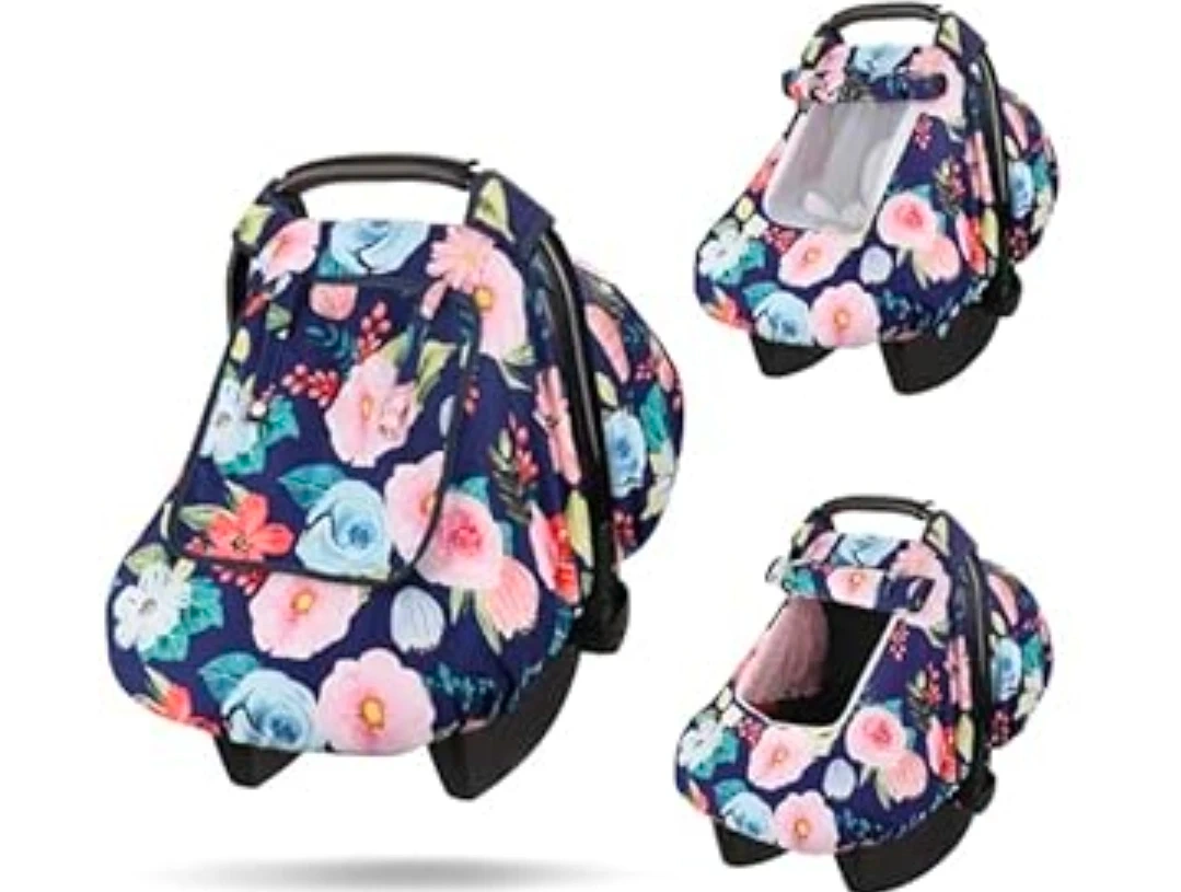 TANOFAR car seat head support and cover set with a floral print. Includes head support pillow and car seat canopy. Keep your little one comfy and protected!