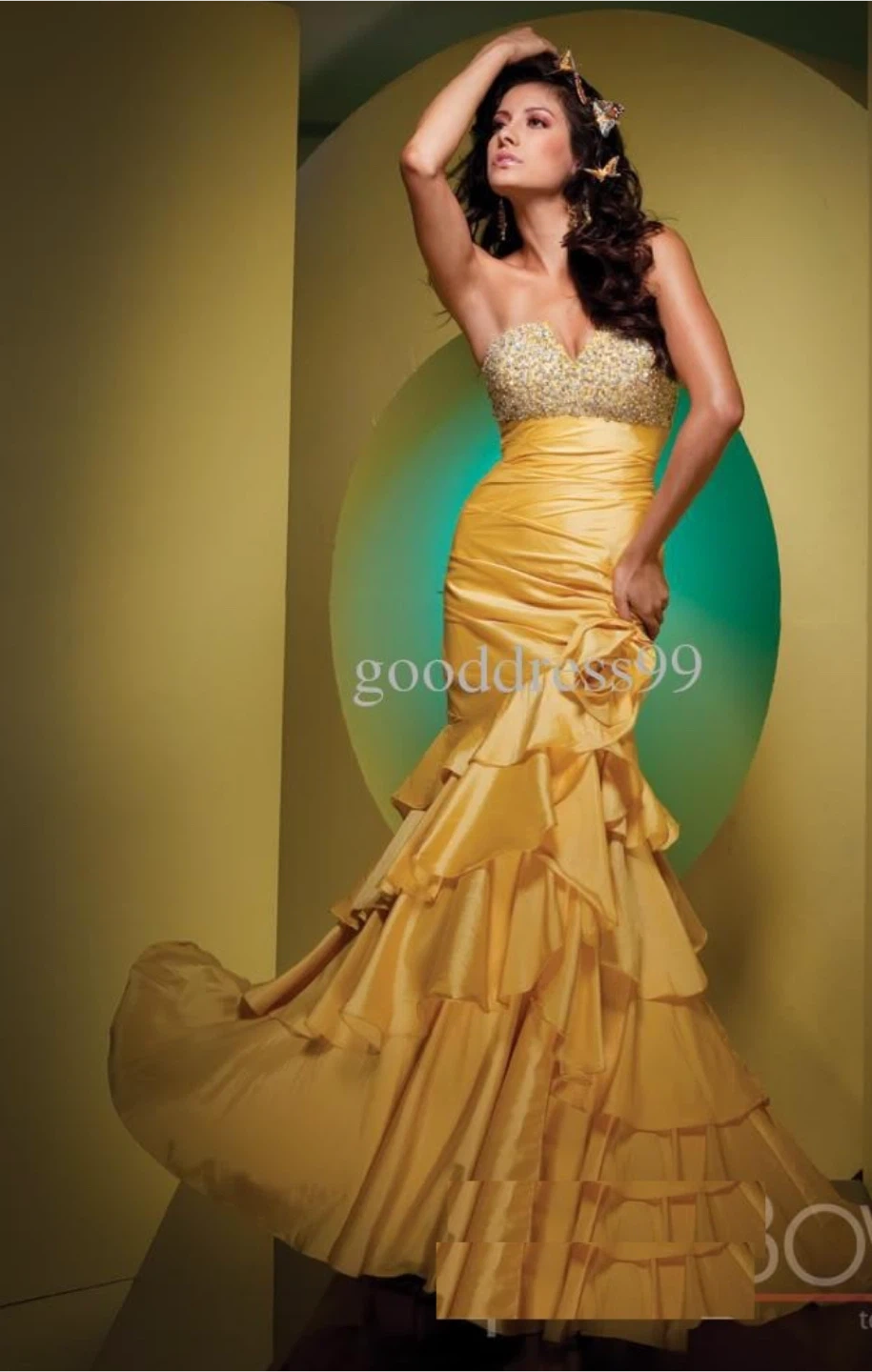 Tony Bowls Le Gala Yellow Beaded Mermaid Gown Size 6