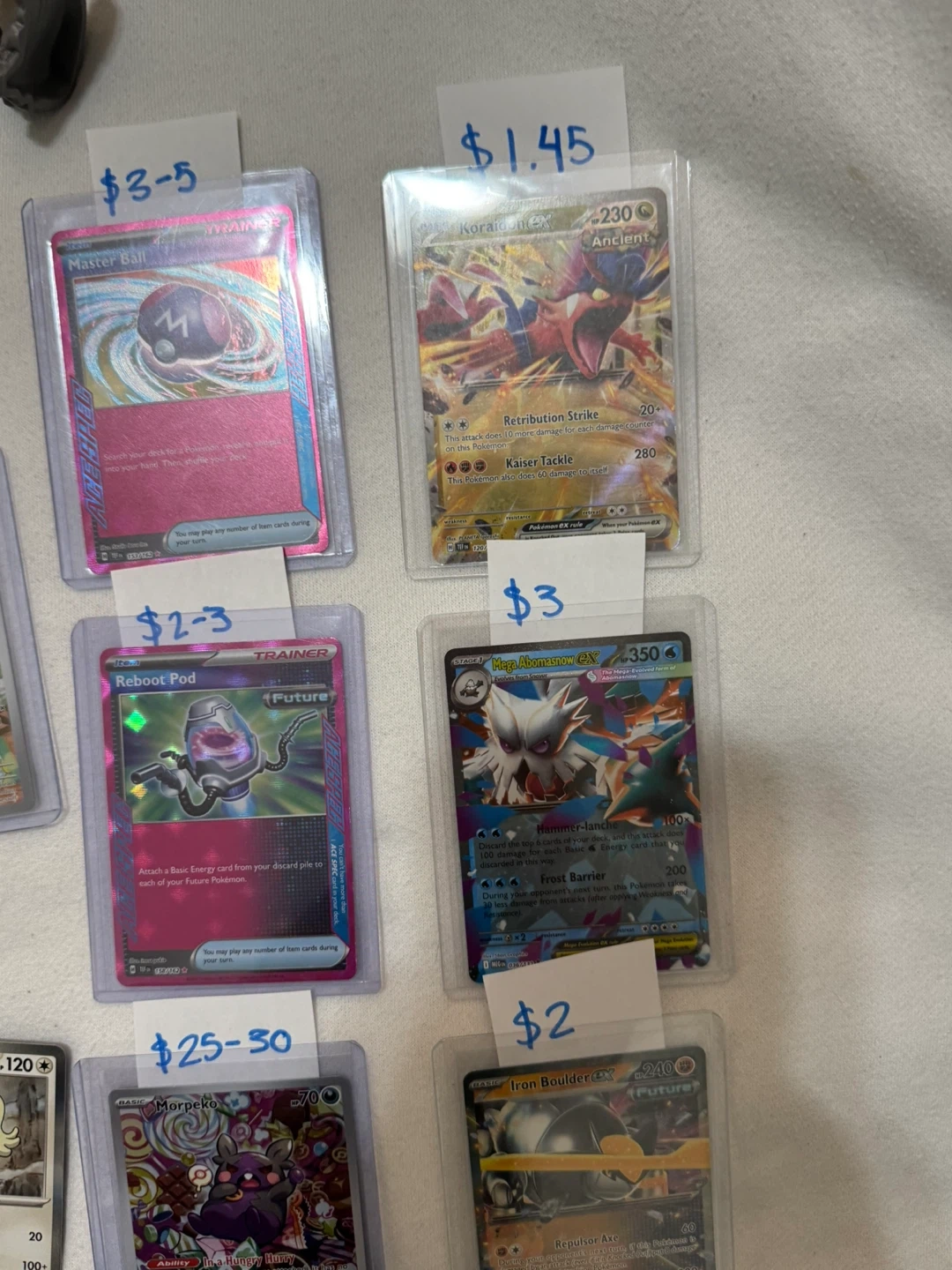 Note: The prices on the paper above each card is what they usually sell for non PSA.