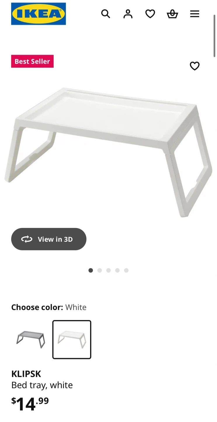 IKEA KLIPSK White Bed Tray