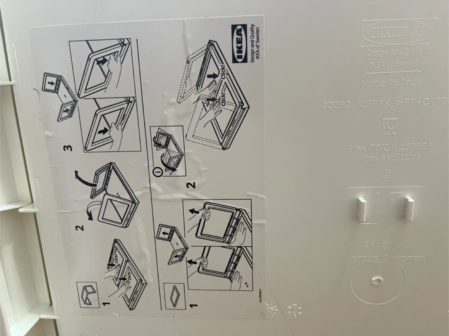 This IKEA KLIPSK bed tray is white and made from PP-G plastic. It's designed to hold up to 5kg. It's handy for breakfast in bed or working from home!