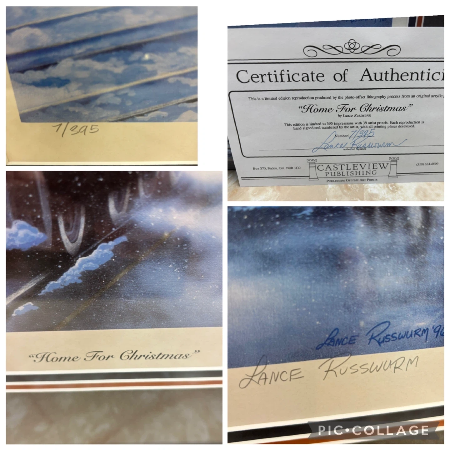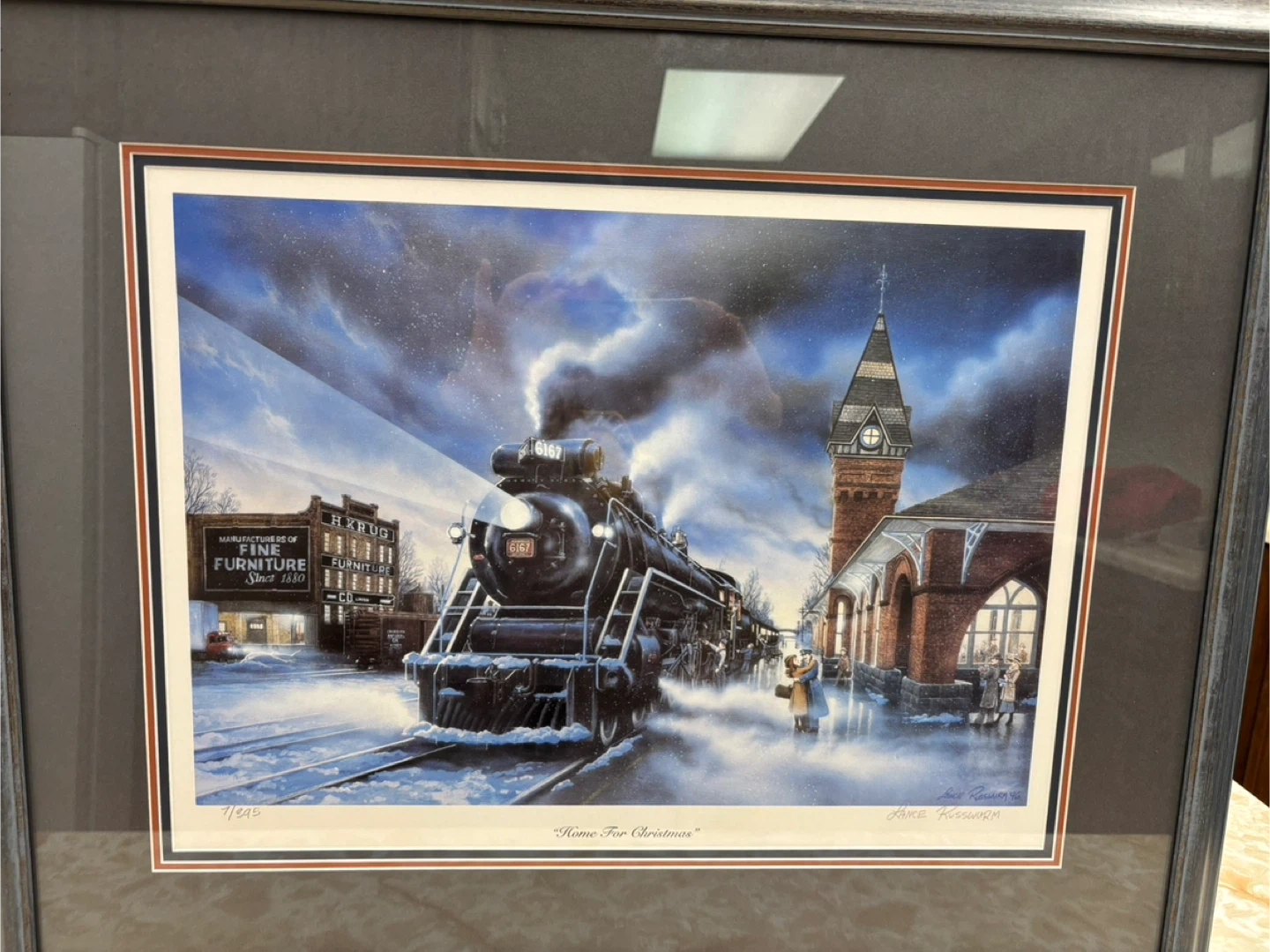 Selling a framed print of "Home For Christmas" by Lance Russwurm. It's a limited edition reproduction from Castleview Publishing. This one is number 7/395.