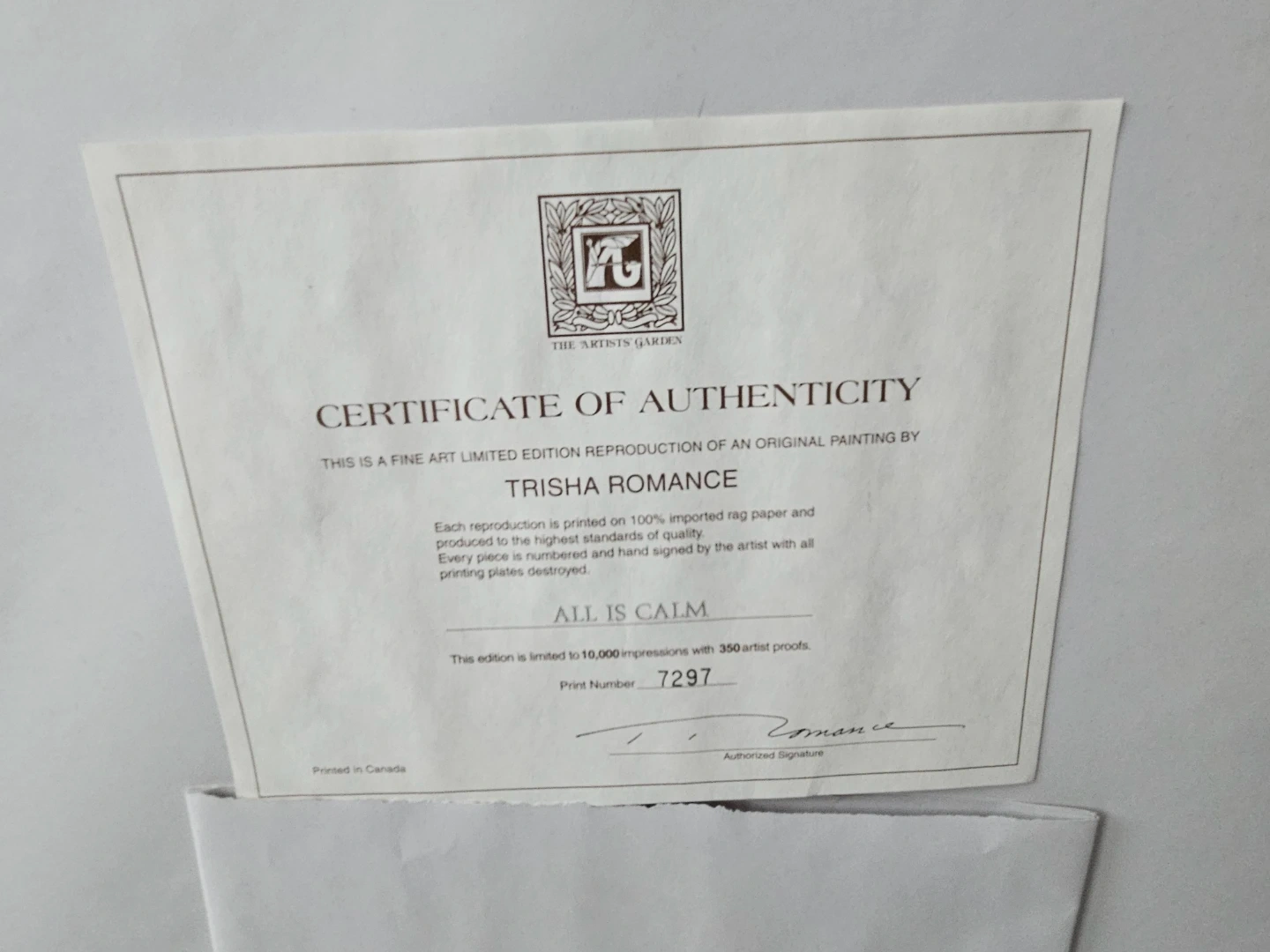 •Autographed Framed Print of 'All Is Calm' by Trisha Romance