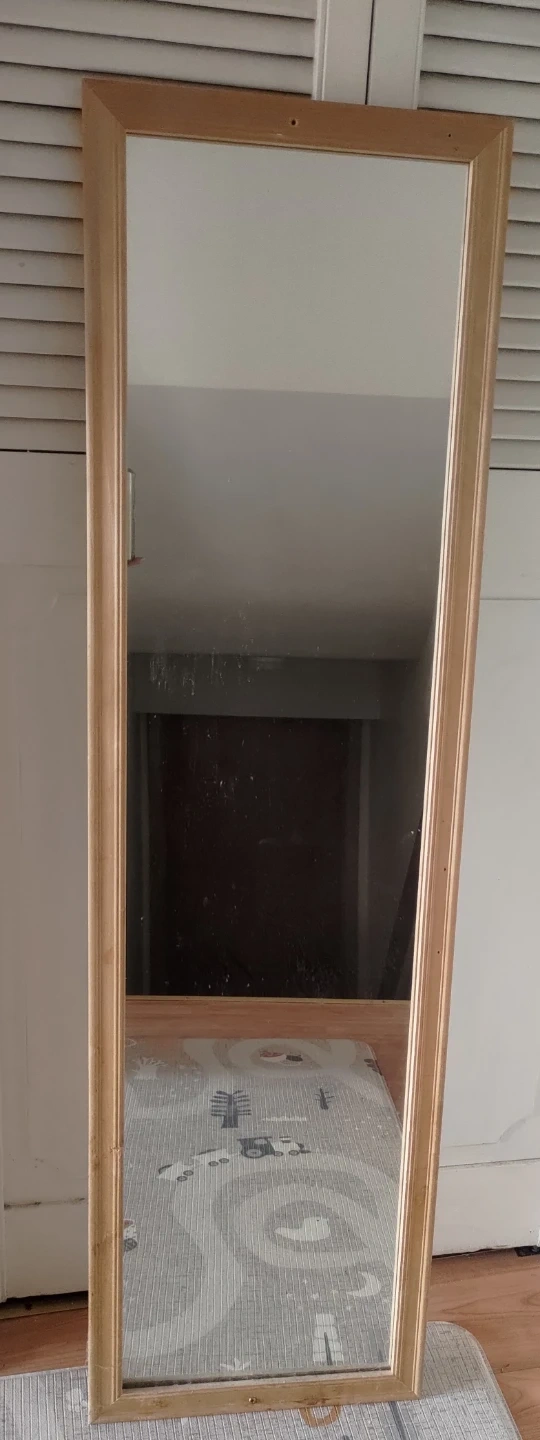 Full-length wooden framed mirror.