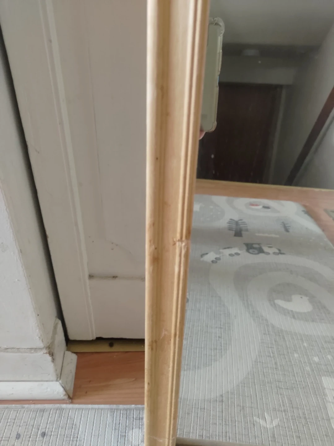 Full-length wooden framed mirror.