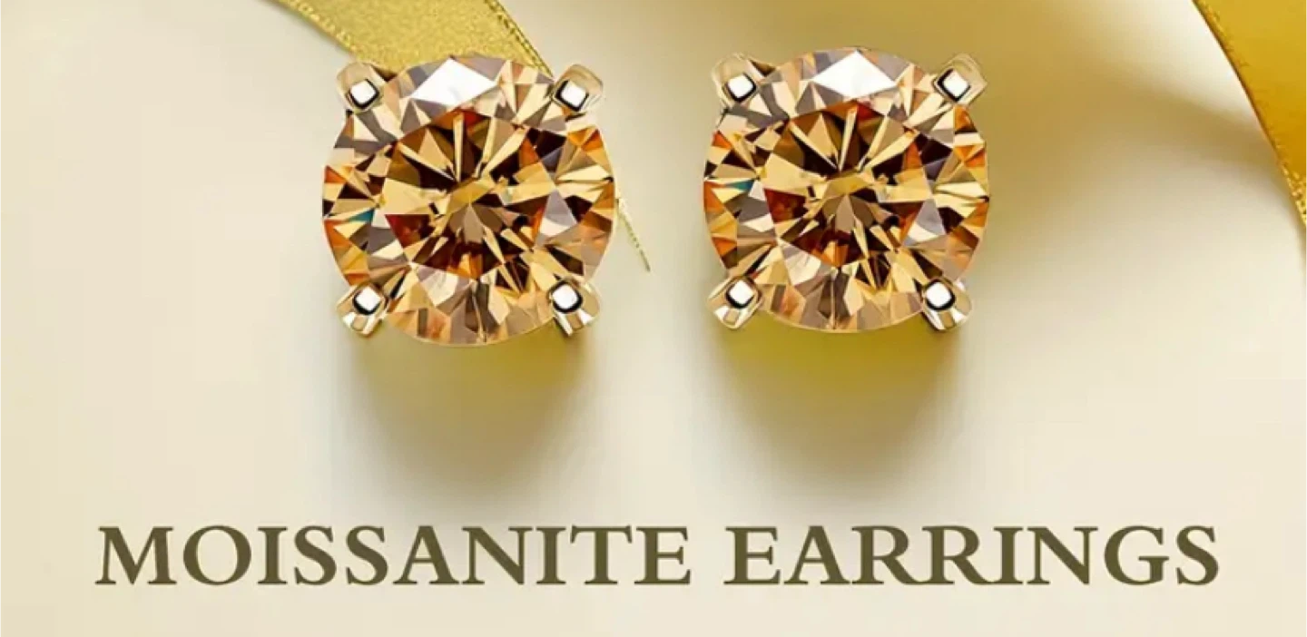 Selling a pair of moissanite stud earrings. These earrings feature a beautiful, sparkling stone that looks just like a diamond. Perfect for adding a touch of elegance to any outfit!