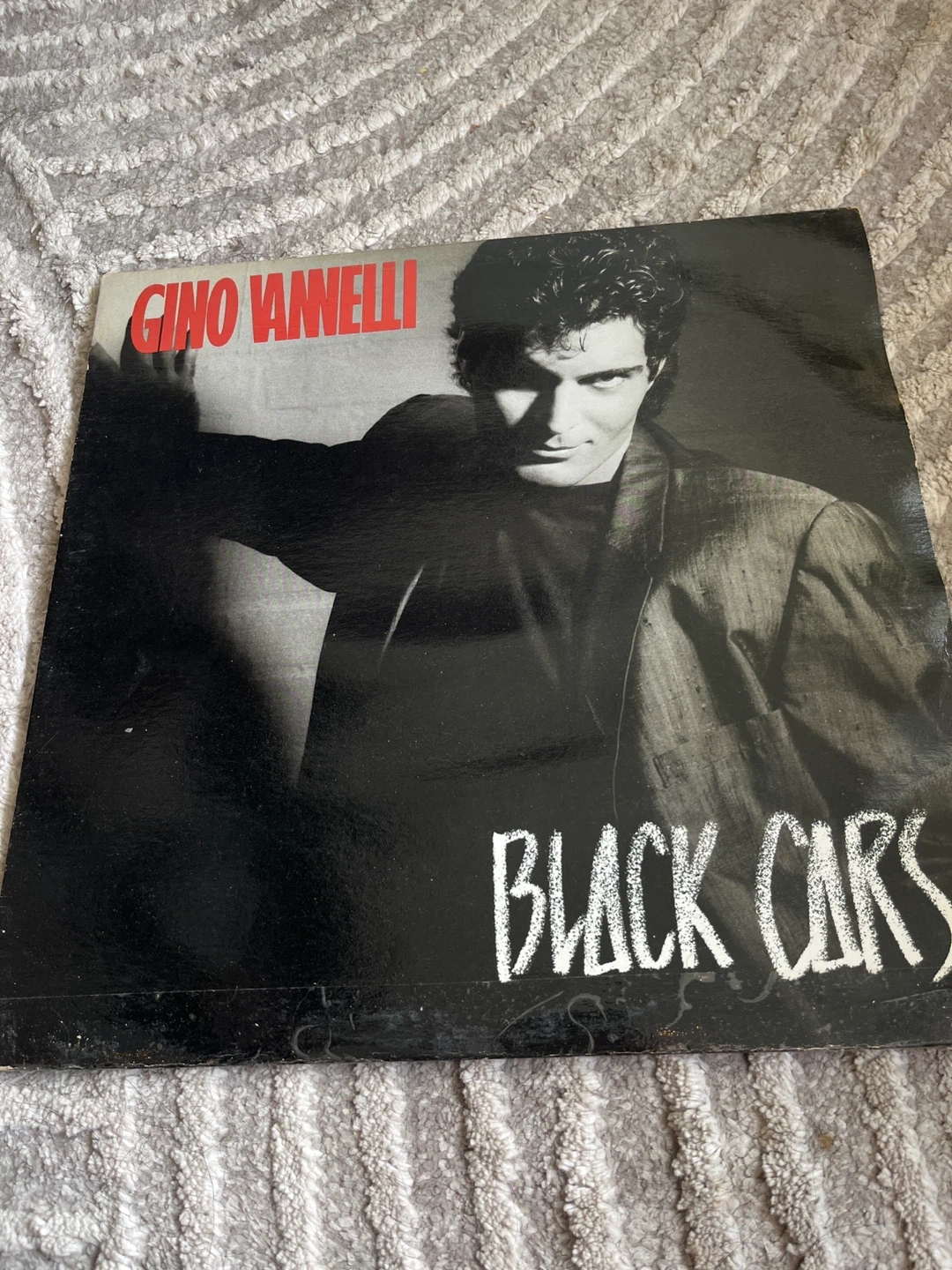 This is the Gino Vannelli "Black Cars" vinyl record album. It's a classic LP for any music enthusiast. The album cover art features Gino Vannelli himself.
