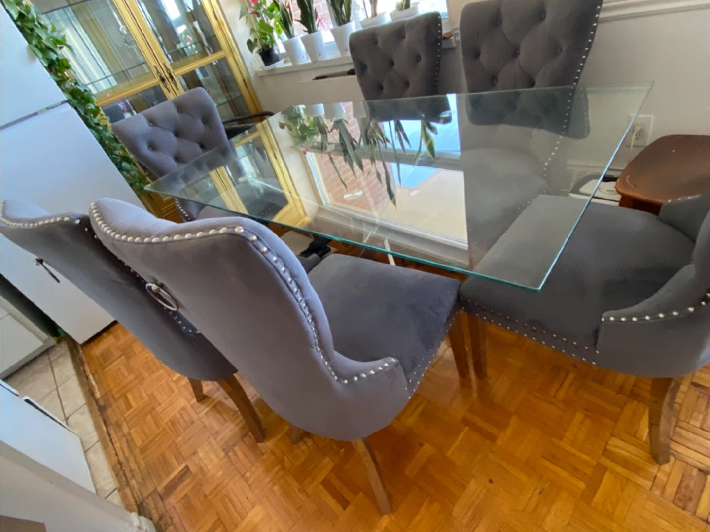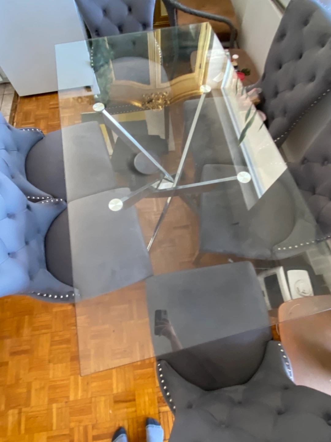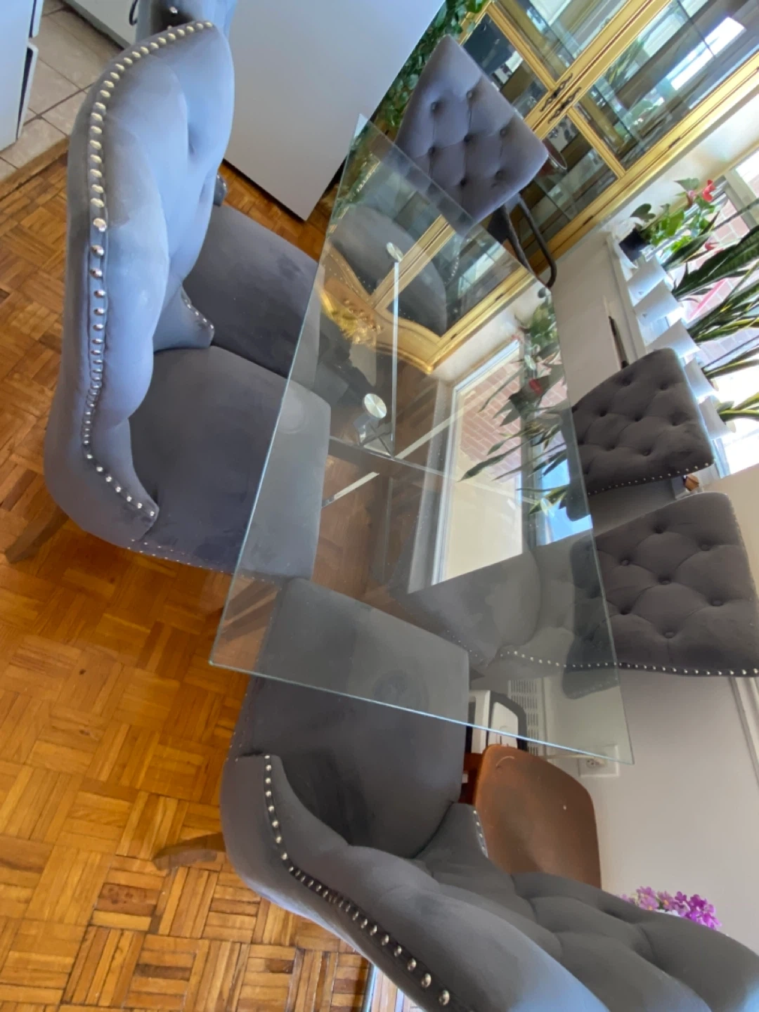 Buy & SellGlass Dining Table with 6 ChairsGlass Dining Table with 6 Chairs$365A stylish dining set featuring a clear glass top with a chrome base. It comes with six grey matching chairs.WHERE TO MEETCheck LocationView MapSELLERParsHillcrest200 reviews6 chats·3 favorites·117 viewsSEND CHAT TO SELLERHi Pars! I’m interested in your listing.Hi Pars! I’m interested in your listing.Get the Karrot app to chatSign In to chat