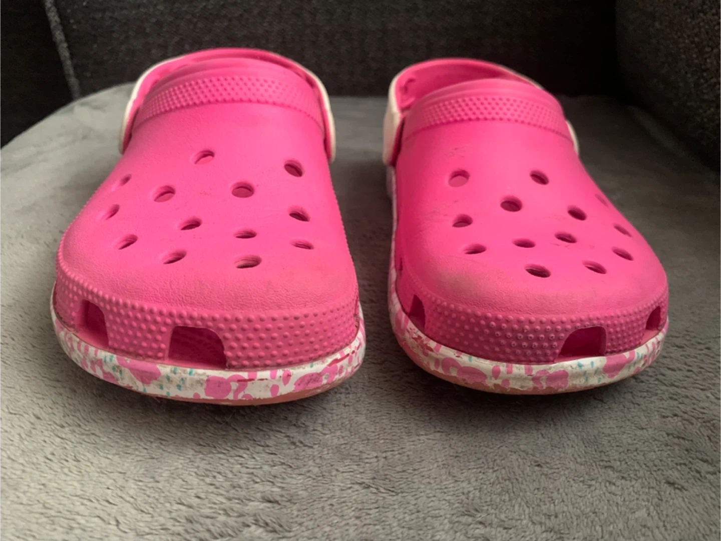 Bright pink Barbie Crocs