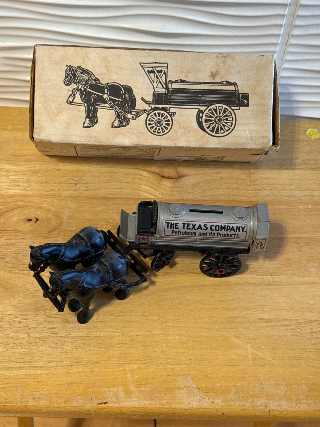 1 / 21 / 2Buy & SellVintage The Texas Company Horse Drawn Tanker BankVintage The Texas Company Horse Drawn Tanker Bank$25Selling a vintage "The Texas Company" horse-drawn tanker bank. It comes with its original box. A unique collectible item!ConditionNewWHERE TO MEETCheck LocationView MapSELLERverifiedJoeRego Park61144 reviews1 chats·2 favorites·16 viewsSEND CHAT TO SELLERHi Joe! I’m interested in your listing.Hi Joe! I’m interested in your listing.Get the Karrot app to chatSign In to chat