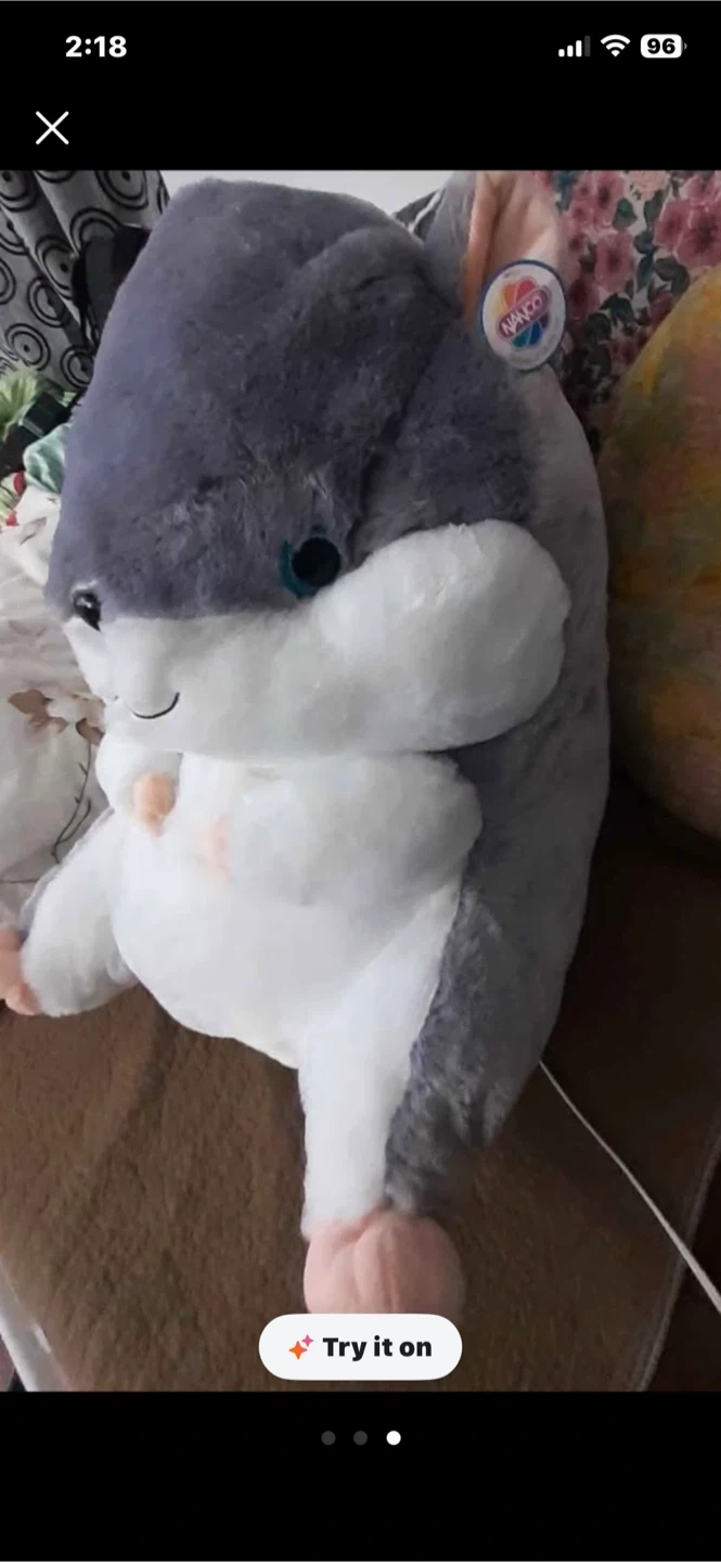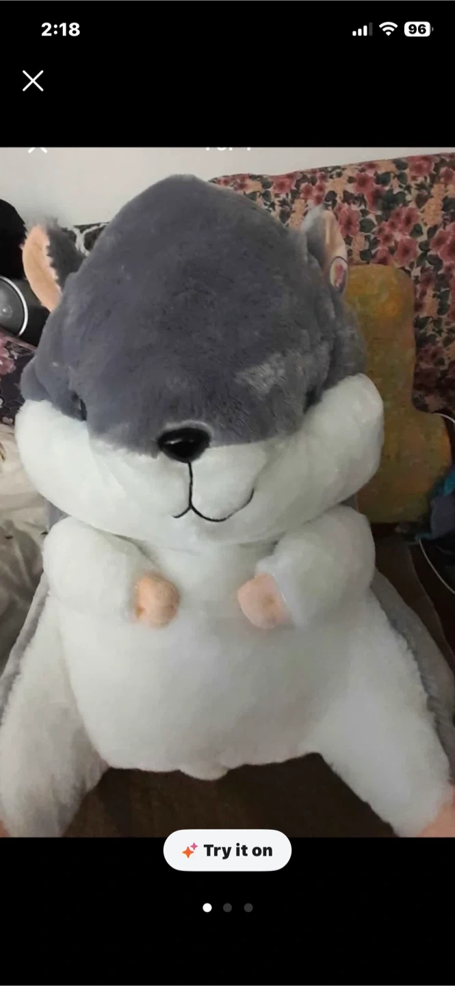 This is a large, super soft plush toy shaped like a hamster. It's grey and white with pink paws and ears. It's perfect for cuddling or as a fun room decoration brand new still on tag $40 check my other posts please pick up only Markham and Lawrence avenue east.