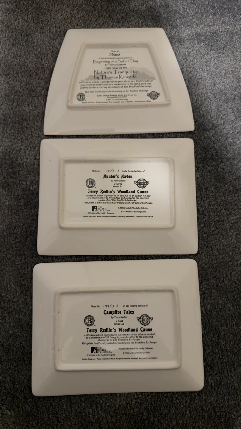 I'm offering a set of three Thomas Kinkade collector plates, each showcasing a different serene landscape scene. These plates, would make a charming addition to any collection or as decorative pieces for your home. The plates feature detailed imagery and capture Kinkade's signature style of warm, inviting scenes. Here are the specifications: