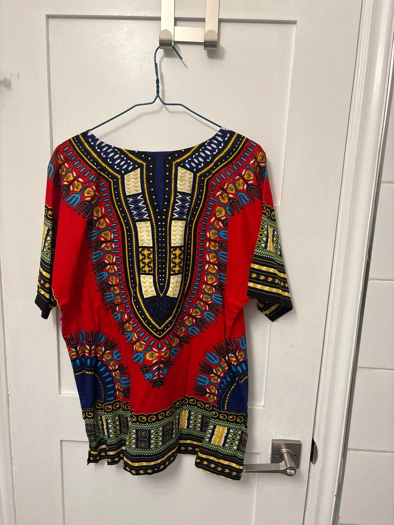 Selling a vibrant dashiki top in size medium! It features a colourful and unique design, perfect for adding a pop of culture to your wardrobe. In great condition!