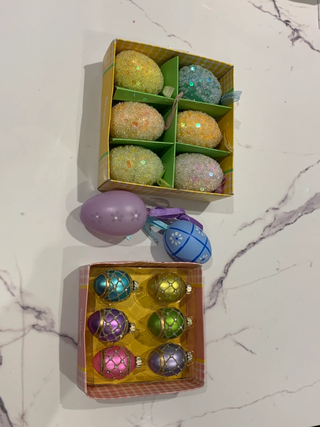 Adorable pastel-coloured Easter egg ornaments. Various textures and designs. Perfect for Easter and Spring decorating.