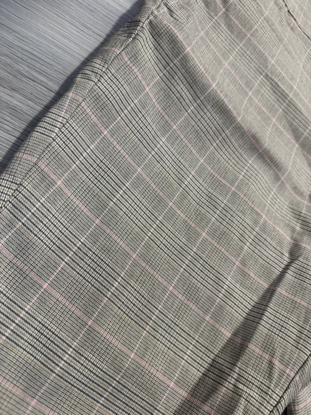 10Selling a pair of plaid dressing pants in grey/pink lines. They are brand new never worn because I have a lot (check my listings) selling because I don’t work at a professional setting so don’t need them. This is in a large it doesn’t tell me exact measurements. Perfect for any occasion just style it up with a nice shirt. Feels like a large/medium to me. Message me if interested!