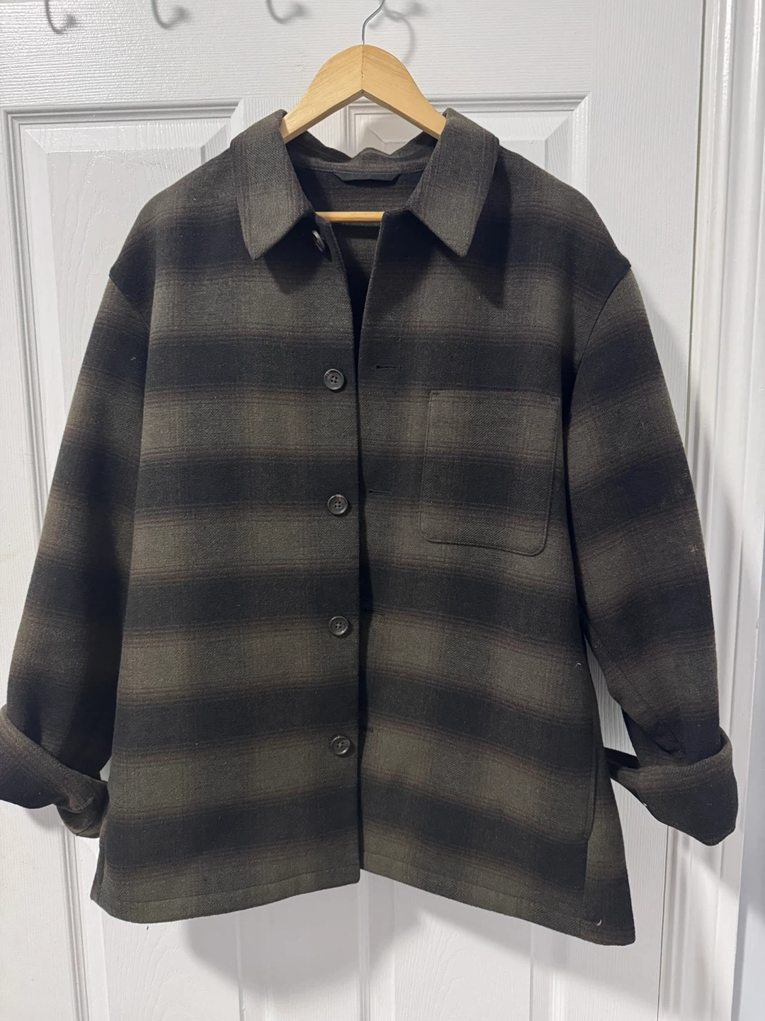 9Here's a cozy plaid overshirt, perfect for layering! It's a wool blend, so it's sure to keep you warm on those cooler days