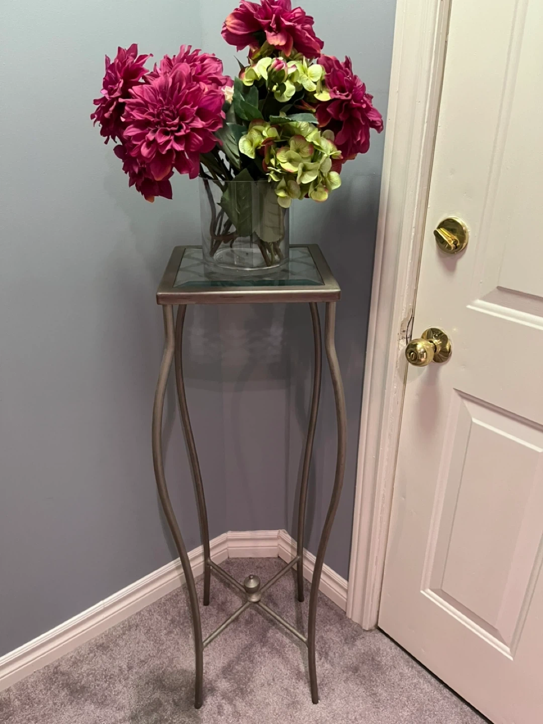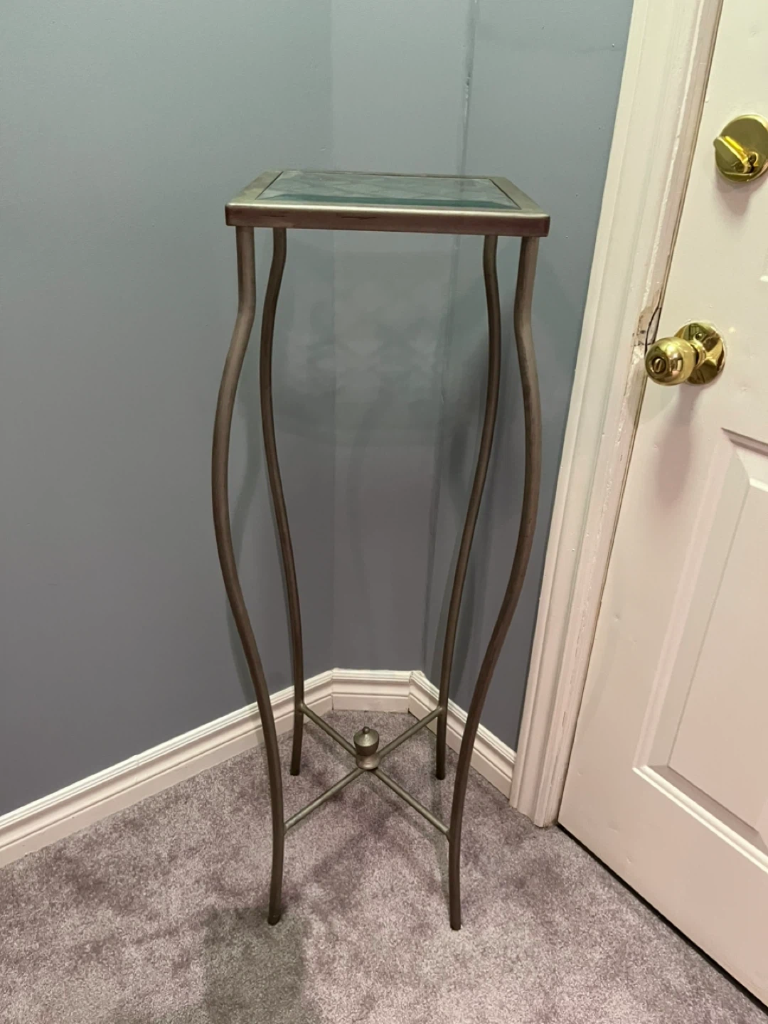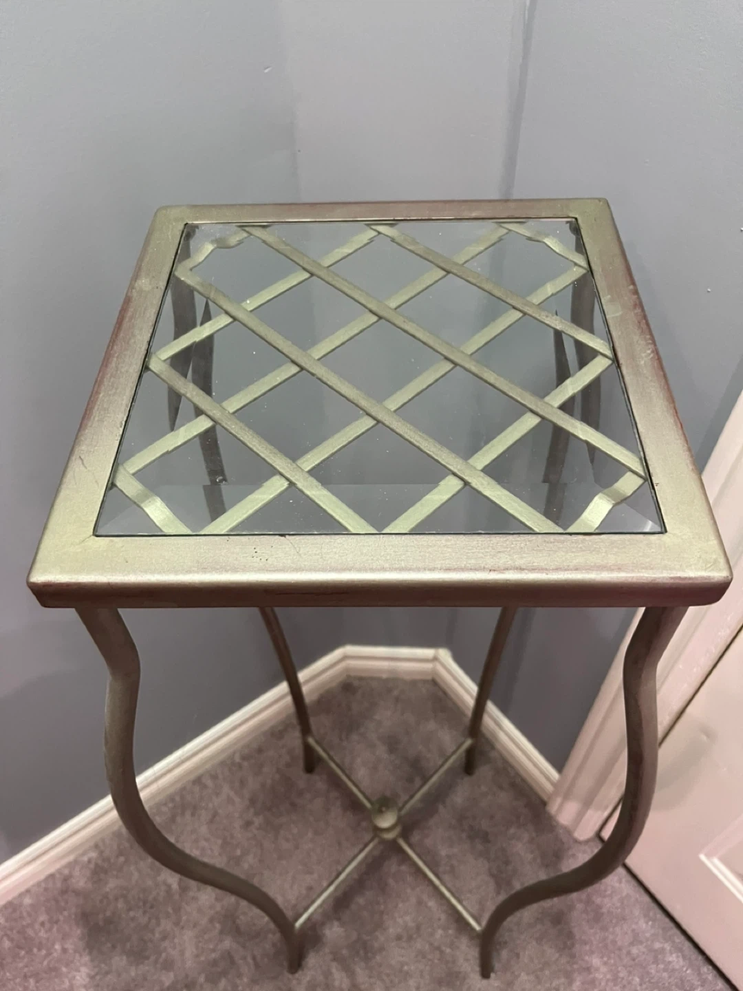 1000+Selling a stylish side table featuring a glass top and a unique metal frame. It's perfect for adding a touch of elegance to any room. Great for displaying plants or as a convenient surface next to your favourite chair! Cash only Bathurst and steeles