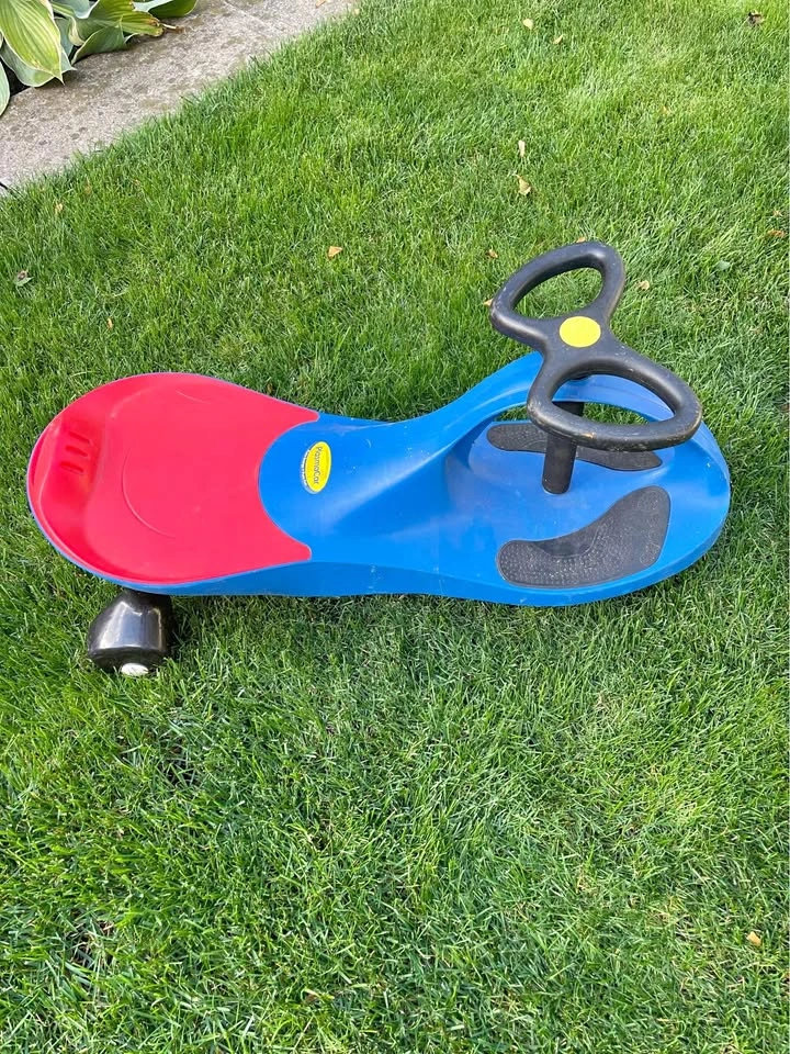 Blue and red plasma car toy for kids. Pick up in Mississauga at Glen Erin and the Collegeway.