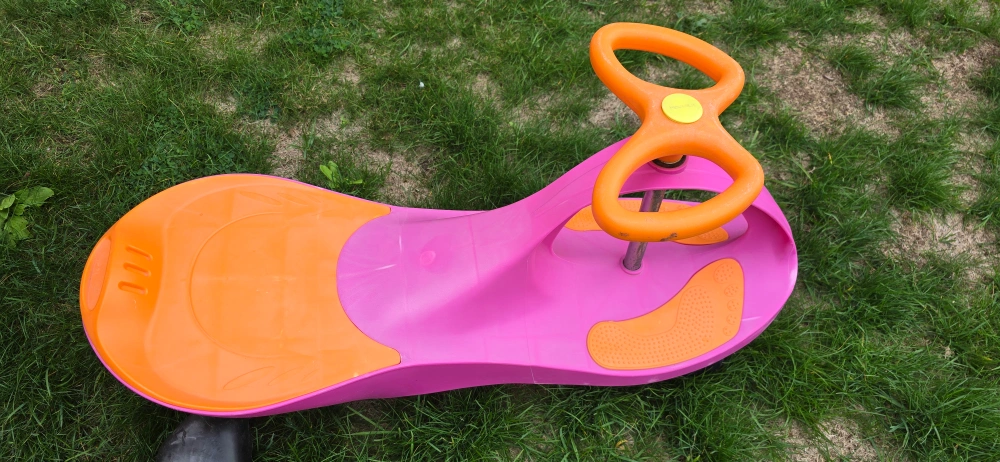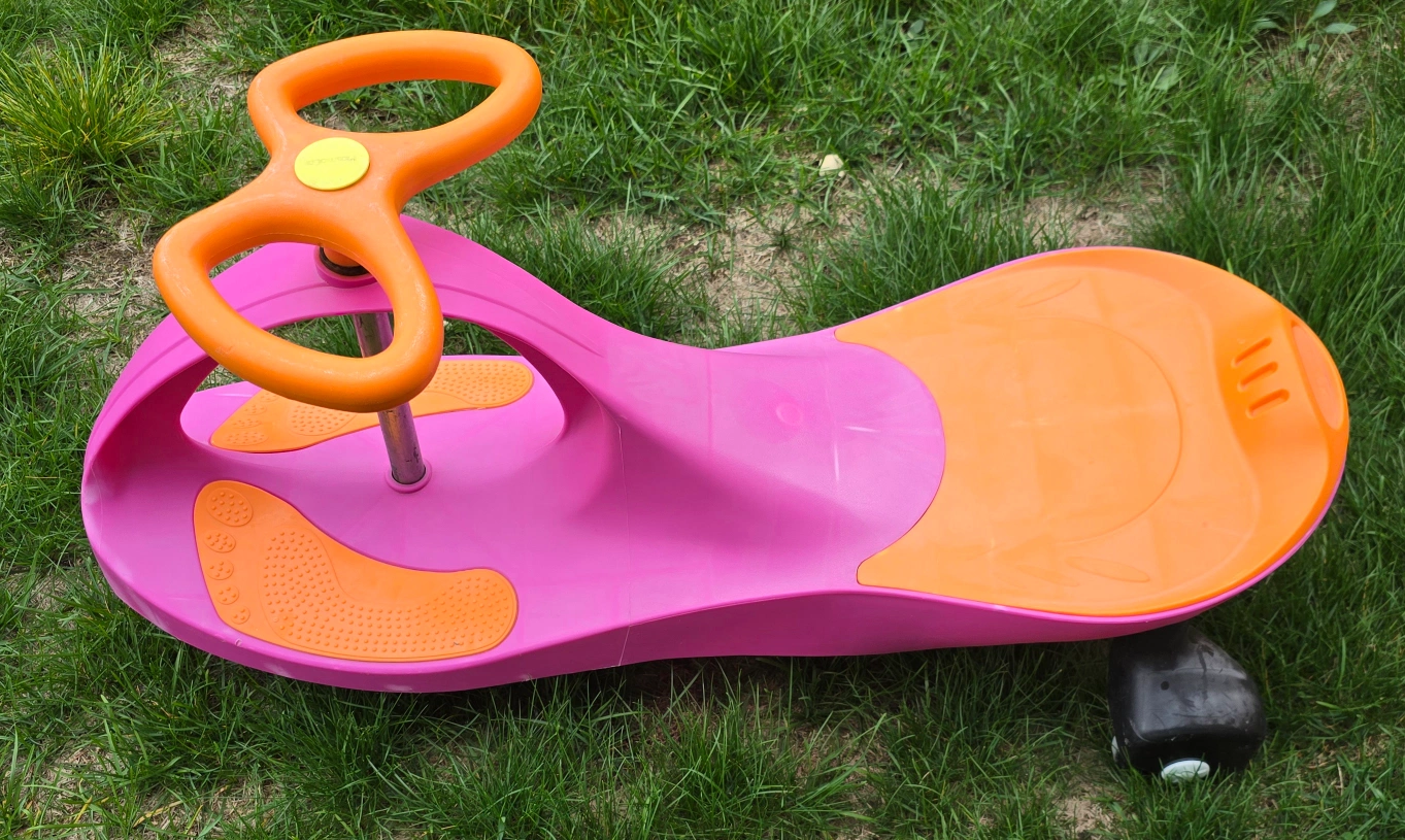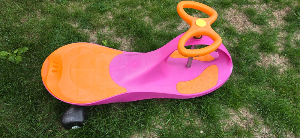 Selling a gently used PlasmaCar in pink and orange! It's a fun and easy way for kids to get around and exercise. No batteries, gears, or pedals needed - just hop on and go! It's in good condition and ready for a new home
