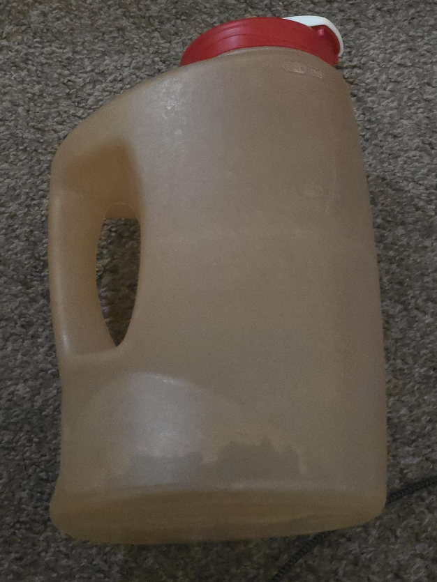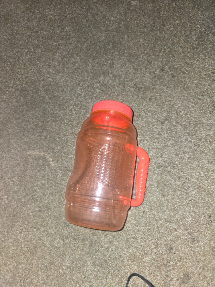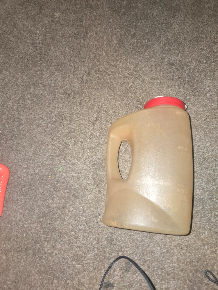 Selling a plastic water jug. It's got a handle and a red lid. Good for storing water or other liquids