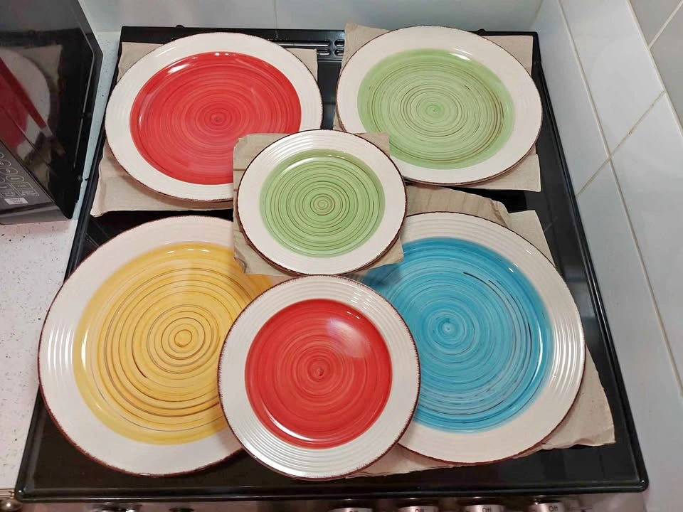 204 dinner plates, 2 small plates, and 3 bowls (5.5 inch dia, 3.5 inches tall). Never used.