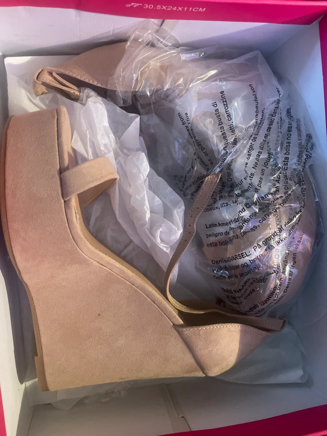 37These platform wedge sandals are in great condition and come with their original box! Size 8 They have a cute, stylish design and would be a great addition to your wardrobe. Perfect for adding a bit of height and flair to any outfit!