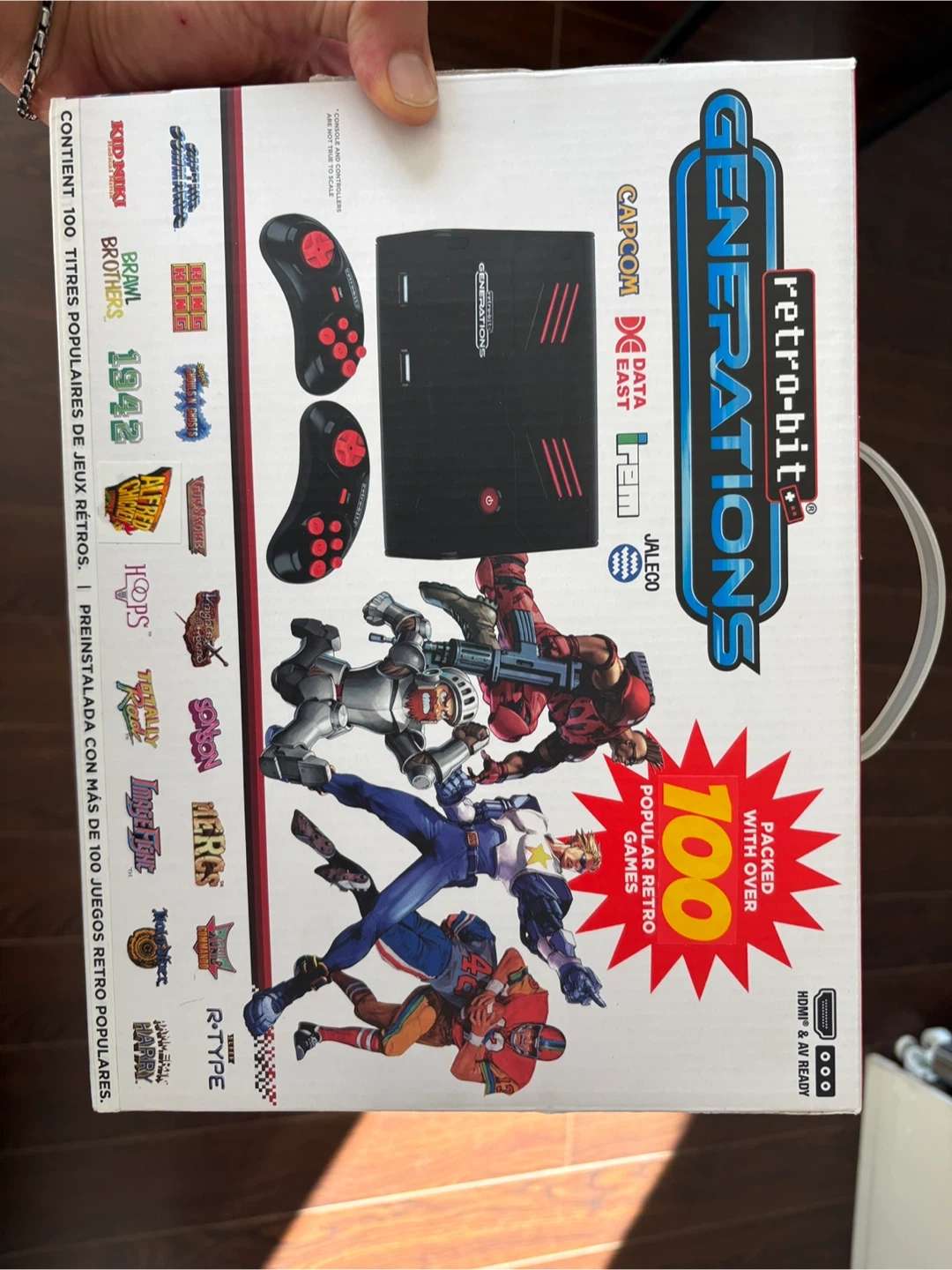 Selling a brand new Retro-Bit Generations plug and play console! It's packed with over 100 retro games and includes two USB six-button retro-style controllers. It also has an internal game save feature, HDMI and AV output, and comes with a cable and power cord. The box is included, along with the instruction manual. Perfect for reliving those classic gaming memories!