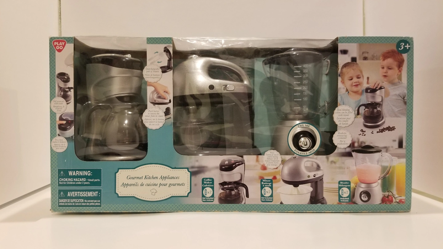 18PlayGo pretend play kitchen set. Includes coffee maker, stand mixer, and blender. Great for imaginative play.