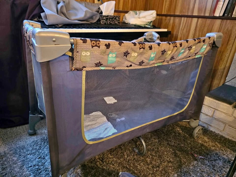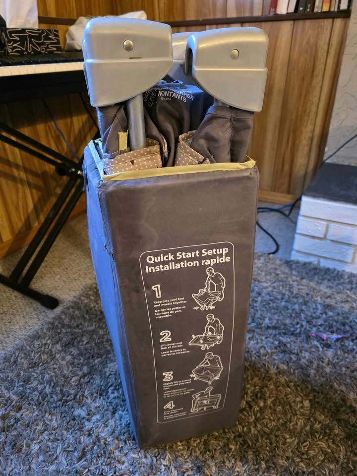 Child's foldable playpen. Small rear in mesh otherwise great condition.