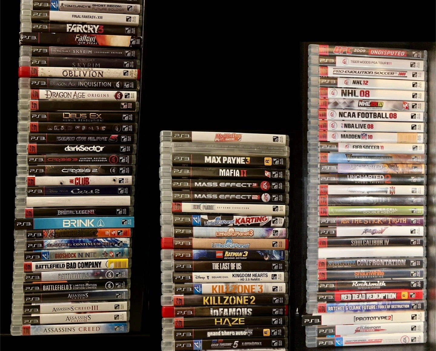 PS3 games for $10 each, 3 for $25, or 7 for $50. Willing to make a deal on bulk purchases. Please note: sports games at the very bottom of the page are $3 each. Most games have box, cover art and manual, although some are disc only. Please ask if you have a question about a particular game’s condition. Cash only, no delivery available. $10 Games: Assassin's Creed Assassin's Creed 2 Assassin's Creed 3 Assassin's Creed Revelations Battlefield 3 Battlefield 4 Battlefield Bad Company Bioshock Infinite Blazblue: Continuum Shift Borderlands 2 Brink Brutal Legend Call of Duty: Modern Warfare 2 Cars 2 The Club Crysis 2 Crysis 3 Dark Sector Dead of Alive 5 Dead Space Deus Ex: Human Revolution Disgaea 3 Dragon Age: Origins Dragon Age: Inquisition The Elder Scrolls IV: Oblivion The Elder Scrolls V: Skyrim Fallout: New Vegas Far Cry 3 Final Fantasy XIII Tom Clancy's Ghost Recon: Future Soldier Gran Turismo 5 XL Edition Grand Theft Auto 5 Haze Infamous Killzone 2 Killzone 3 Kingdom Hearts HD 2.5 Remix The Last of Us Lego Batman 3: Beyond Gotham City LittleBigPlanet LittleBigPlanet 3 LittleBigPlanet Karting Lost Planet: Extreme Condition Mass Effect 2 Mass Effect 3 Mafia 2 Max Payne 3 Metal Gear Solid 4 Modnation Racers Need for Speed: Most Wanted Operation Flashpoint: Red River Prototype 2 Ratchet and Clank Future: Tools of Destruction Red Dead Redemption Rocksmith Shaun White Snowboarding Socom Confrontation Sonic's Ultimate Genesis Collection Sould Calibur 4 Soul Calibur 5 South Park: The Stick of Truth Tom Clancy's Splinter Cell: Double Agent Timeshift Unreal Tournament 3 Uncharted 2: Among Thieves Uncharted 3: Drake's Deception Valkyria Chronicles Sports Games: Fifa Soccer 11 Madden 10 NBA Live 08 NCAA Football 08 NHL 2K10 NHL 08 NHL 12 Pro Evolution Soccer 2009 Tiger Woods PGA Tour 11 UFC Undisputed 2009