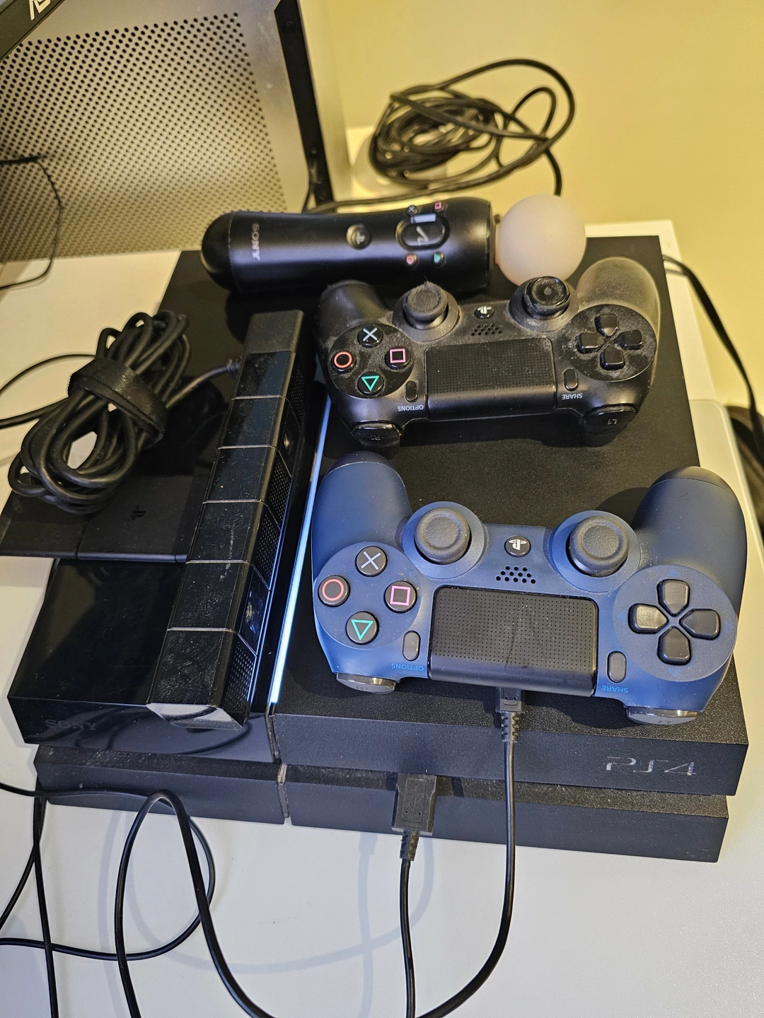 📦 Includes: • 1 PlayStation 4 console (500GB, Model CUH-1115A) • 2 DualShock 4 controllers • 1 PlayStation Motion Controller (missing cable) • 1 PlayStation Camera • Cables: 2 x dualshock 4 controller charging cables 1 x motion controller charging cable 1 x HDMI, 1 x PS4 power cable. 🎮 Games Included: • Uncharted 4 • Call of Duty: Infinity Warfare • Tom Clancy’s Rainbow Six Siege • Just Dance 2016 • FIFA 16 • FIFA 15 • Little Big Planet 3 • Destiny • Uncharted 4 • Horizon Zero Dawn 💰 Price: Cash only