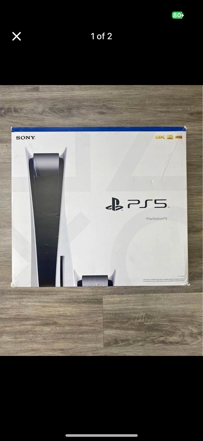 New PlayStation 5 console. packaging. Includes console and accessories. 8K, 4K, HDR.