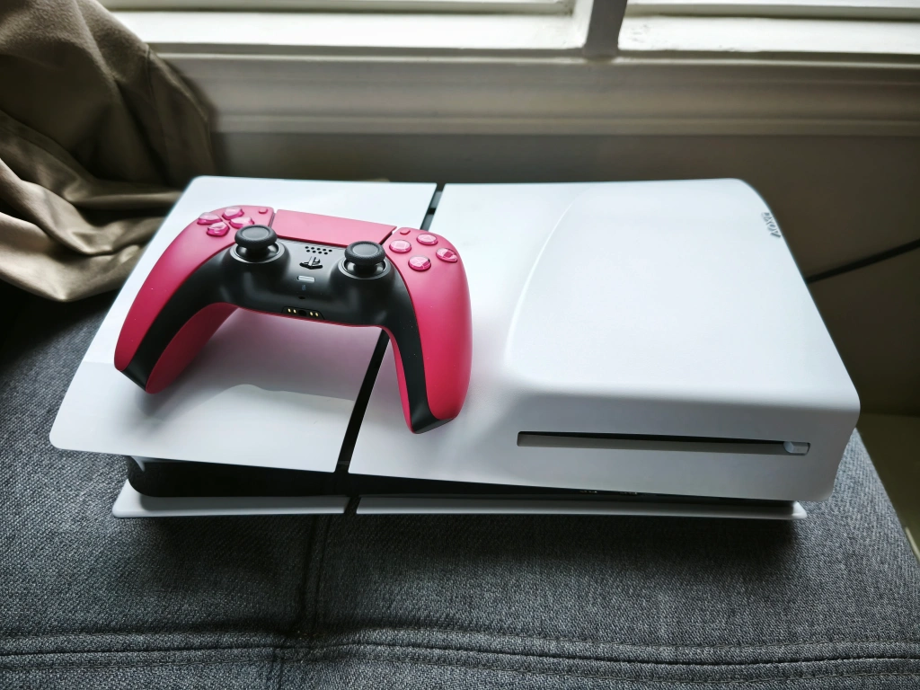 The white console with a matching red and black controller looks amazing. It is a great item to bring some peace of mind during a stressful day.