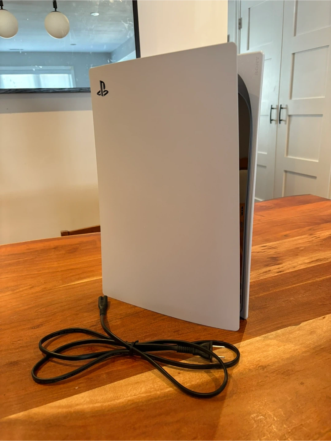 Selling a PlayStation 5 (disc drive model). Includes: - power cable - 1 controller