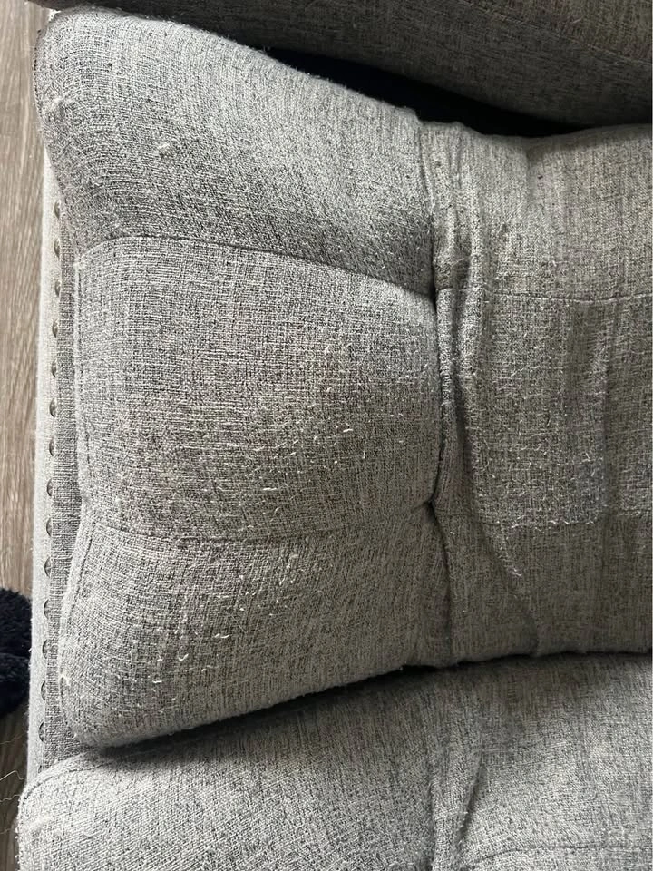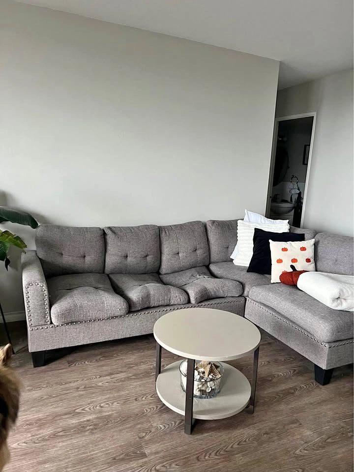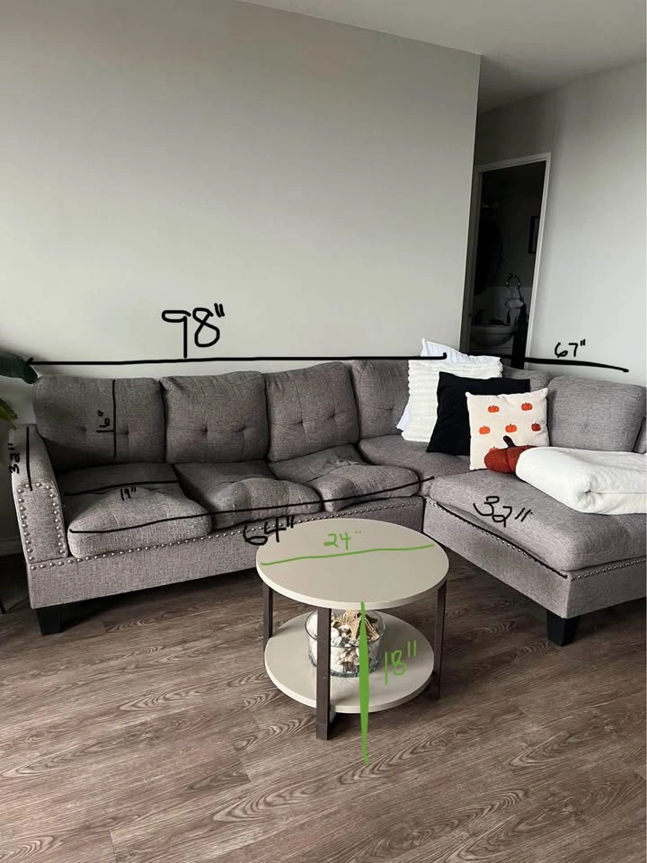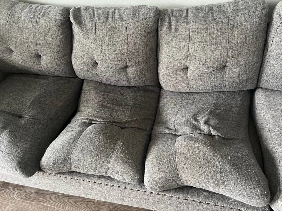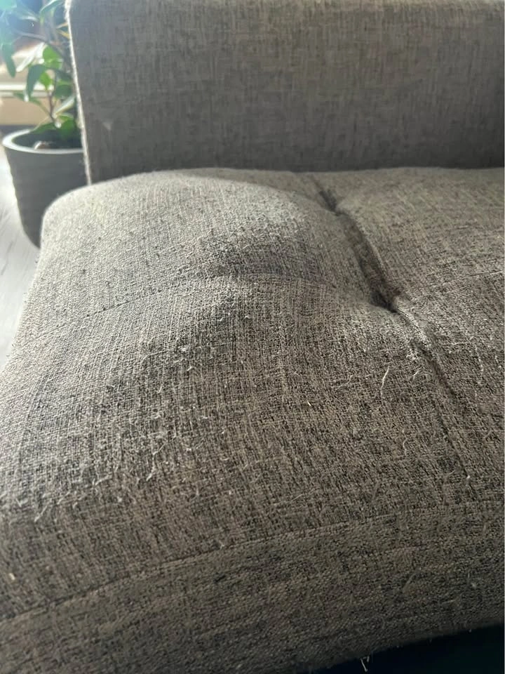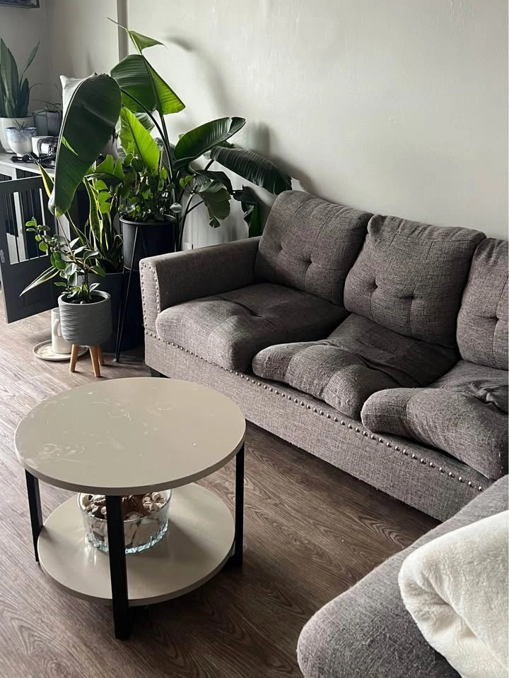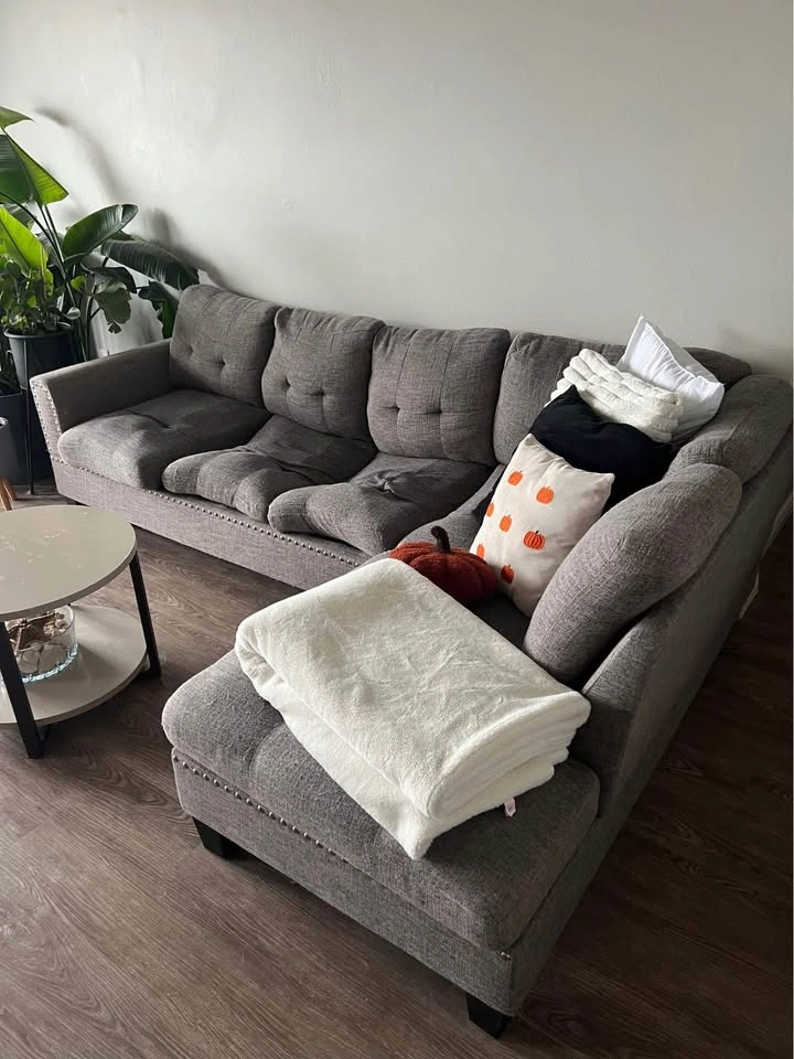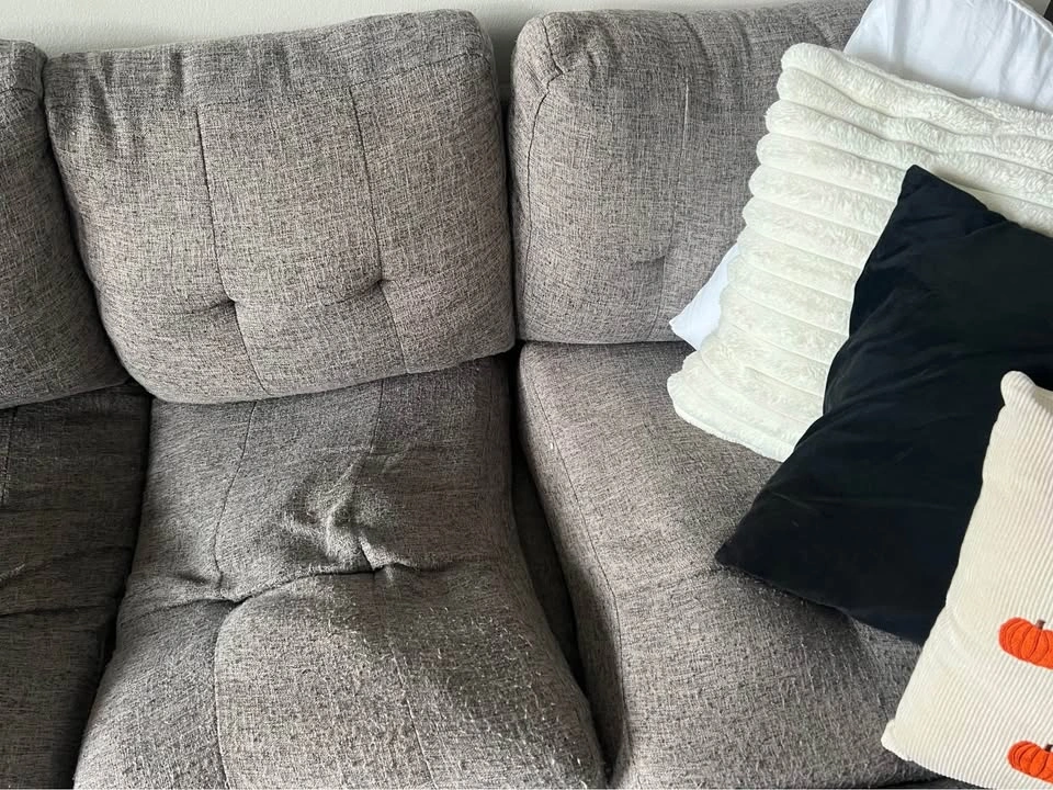 Sectional & Table are on their last life lol. This sofa is WELL loved! Selling for anyone is in desperate need or someone looking for a prop/throwaway. Please Note: •Pet hair (will try my absolute best to take it all off) •Non smoking house (maybe the only benefit on this listing lol) •DOES NOT include throw pillows or blanket. •PICK UP ONLY (Available on the 22/23rd of October @ Barton/Parkdale) - This comes apart in 2 pieces - the 3 Seater & the Chaise lounger. •Springs have popped up •Sofa has pilling •Cushions are disfigured •Table is Rocky & has some water damage. Just looking to get my shipping reimbursement on my new living room set by selling these 🥲