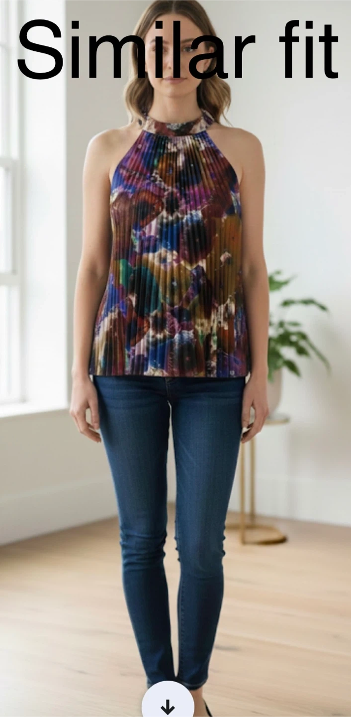 82This is a beautiful pleated halter top. It features a vibrant, colourful floral pattern. Perfect for a stylish and unique look! Used and in good condition Fits similarly to last photo but a bit longer.