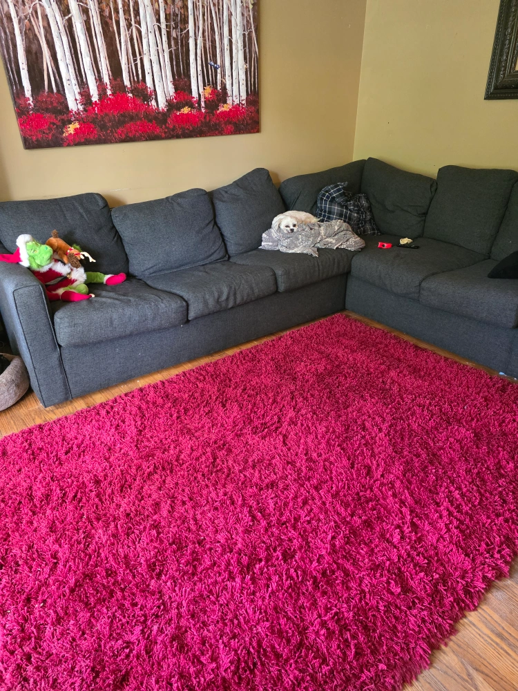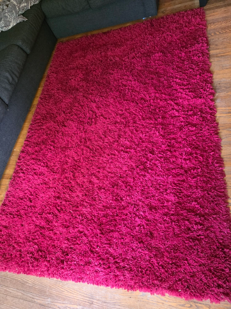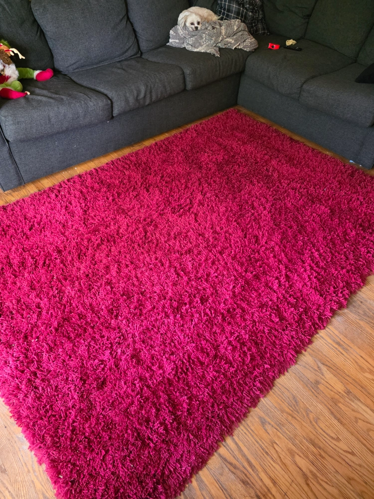 60Add a pop of colour to your space with this plush magenta rug! It's in great condition and ready to brighten up any room