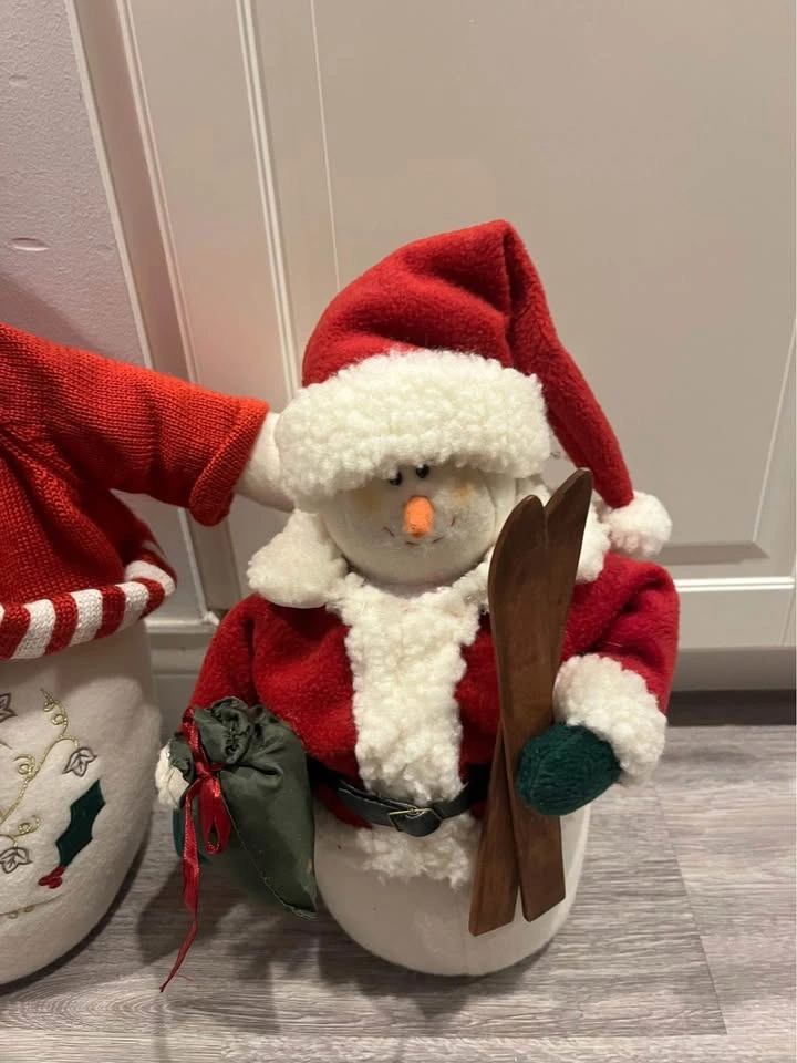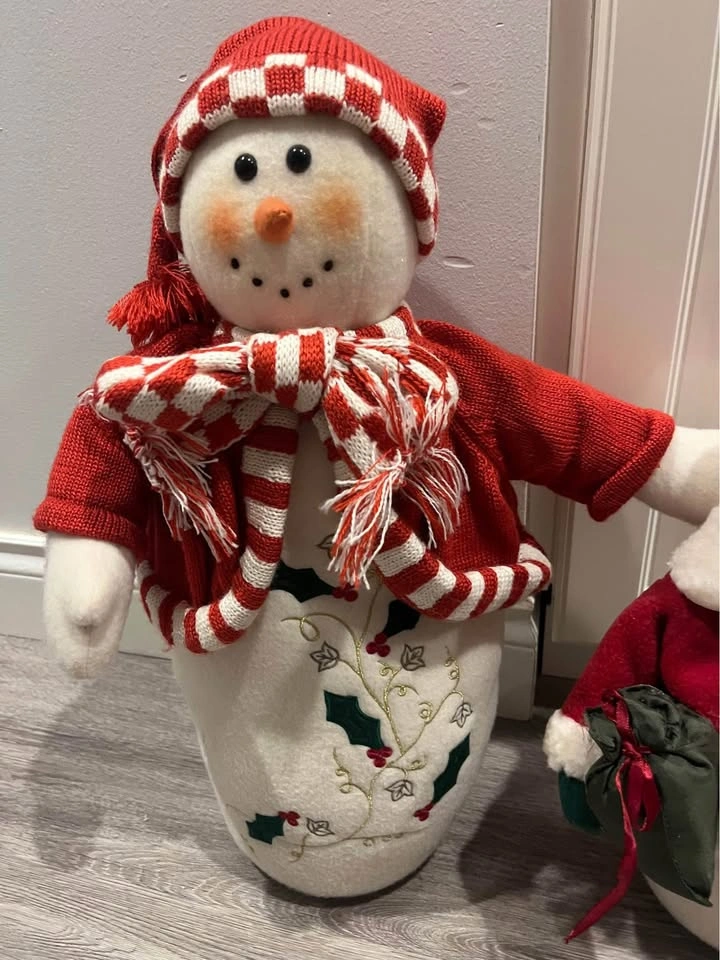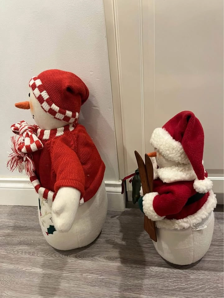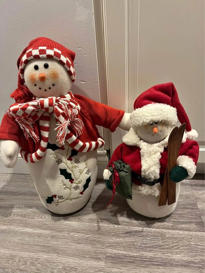 Plush Santas, one is 16” tall, the other is 13”. Weighted bottoms keep them upright. Price is for both.