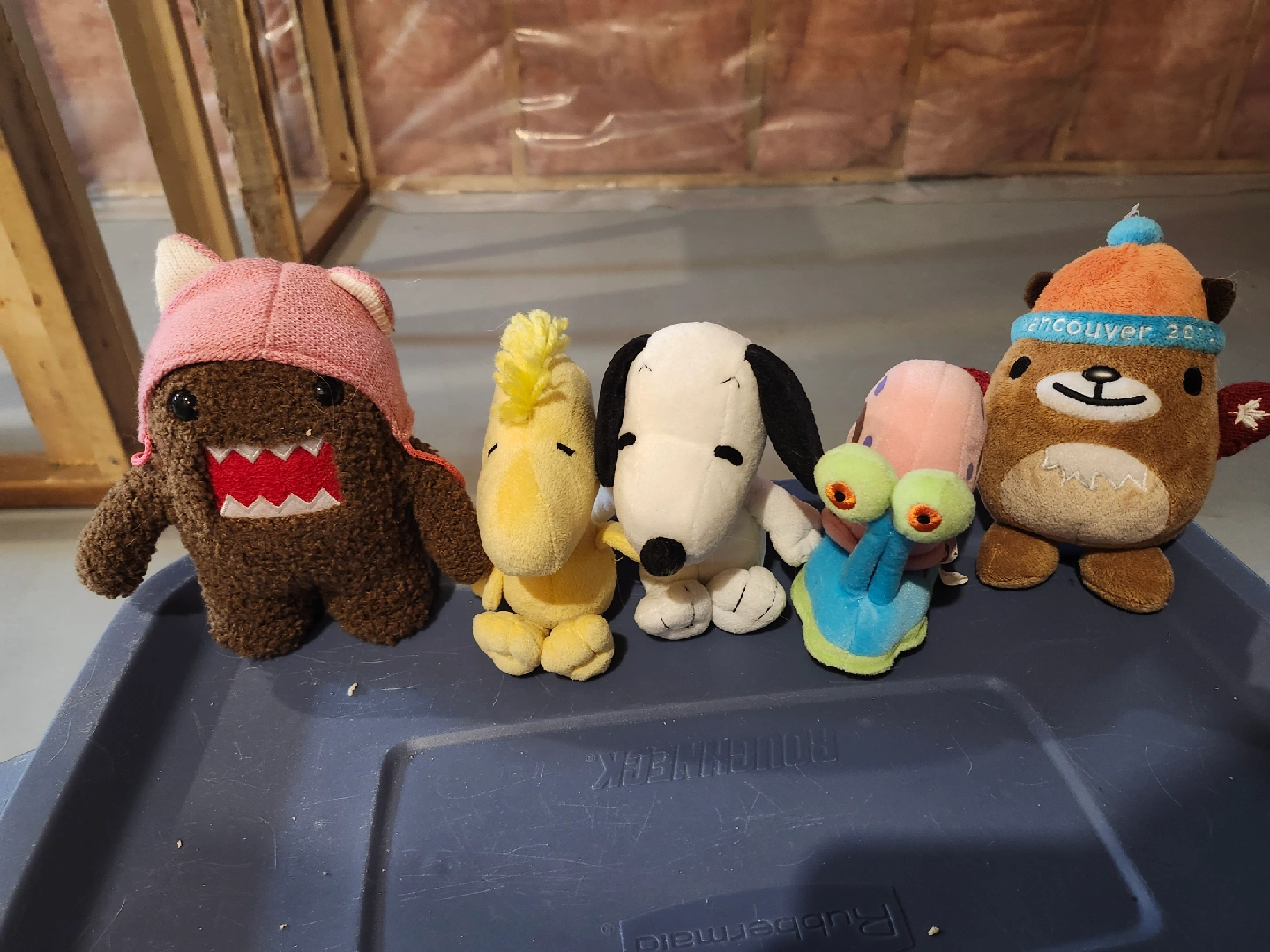 60A collection of cute plush toys looking for a new home! Includes Snoopy, Woodstock, Domo, Gary, and a world Olympics mascot